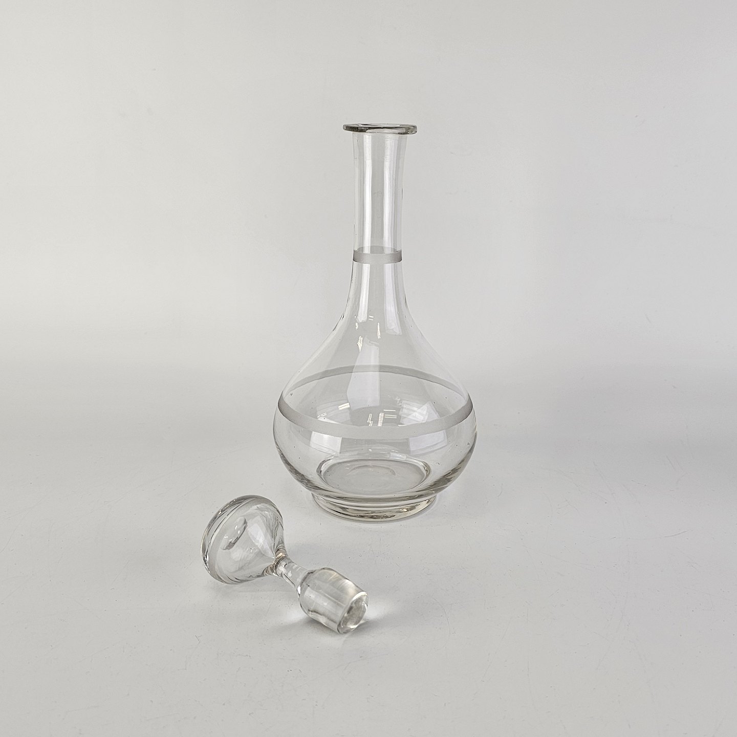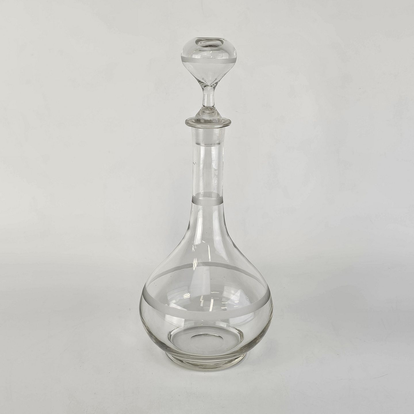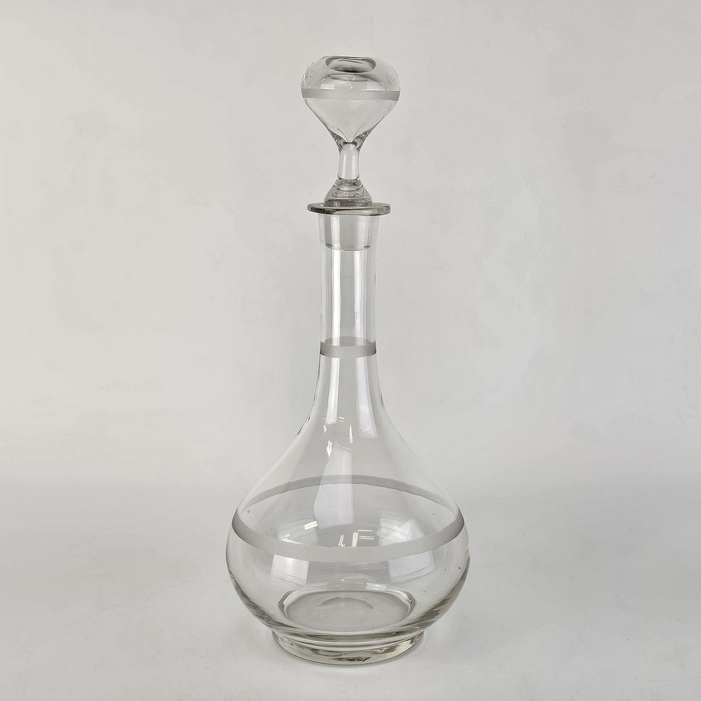 Flaske med prop af gennemsigtigt glas med båndslibning