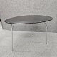 Æggeformet bord, model 3603 med bordplade af sortlakeret eg og ben af forkromet stål