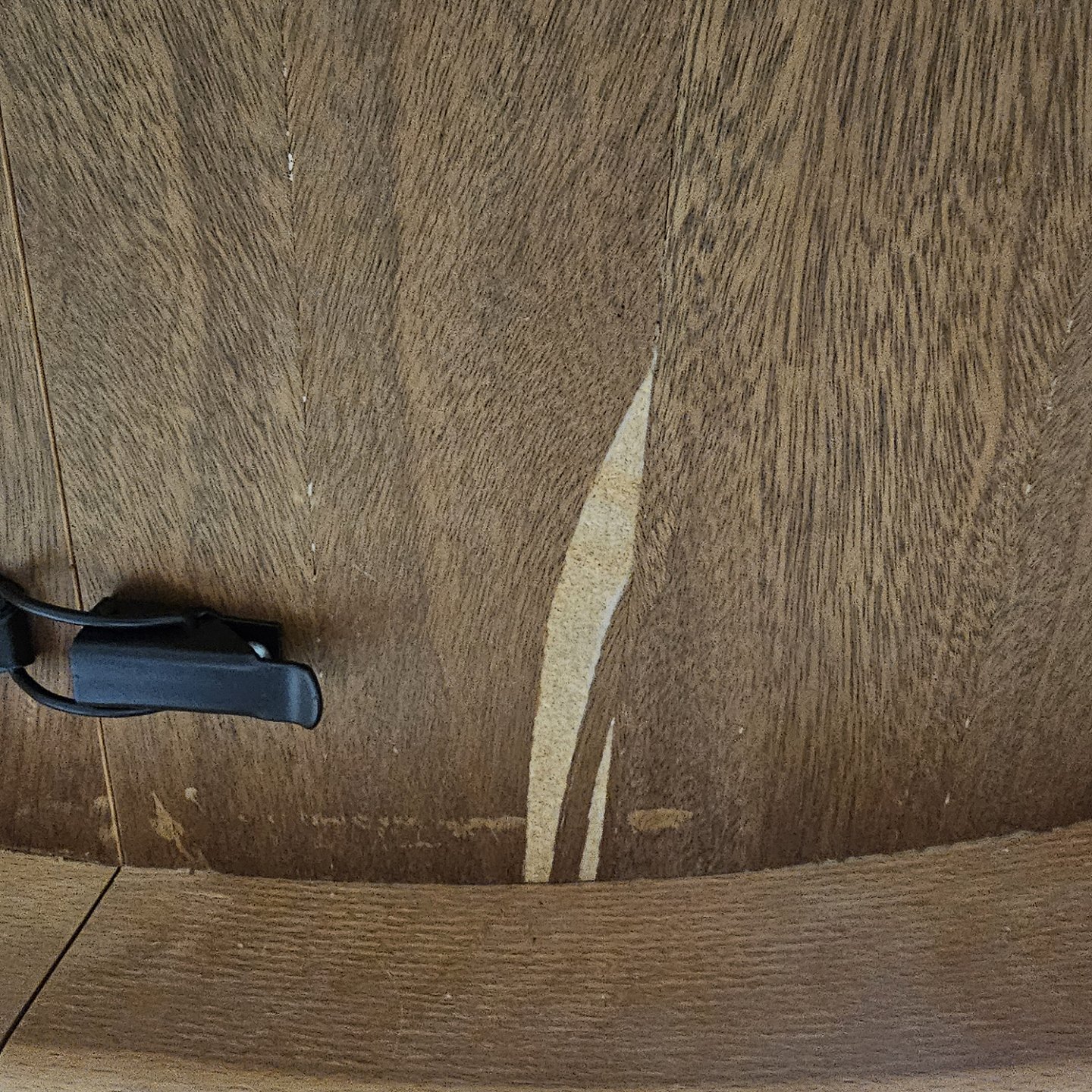 Fremstår med diverse brugsspor, og der er en slid i lakken på bordpladen