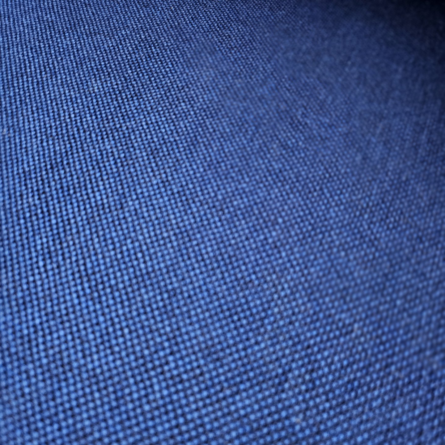Bamsestol betrukket i blå Hallingdal uld med teak negle og ben i eg