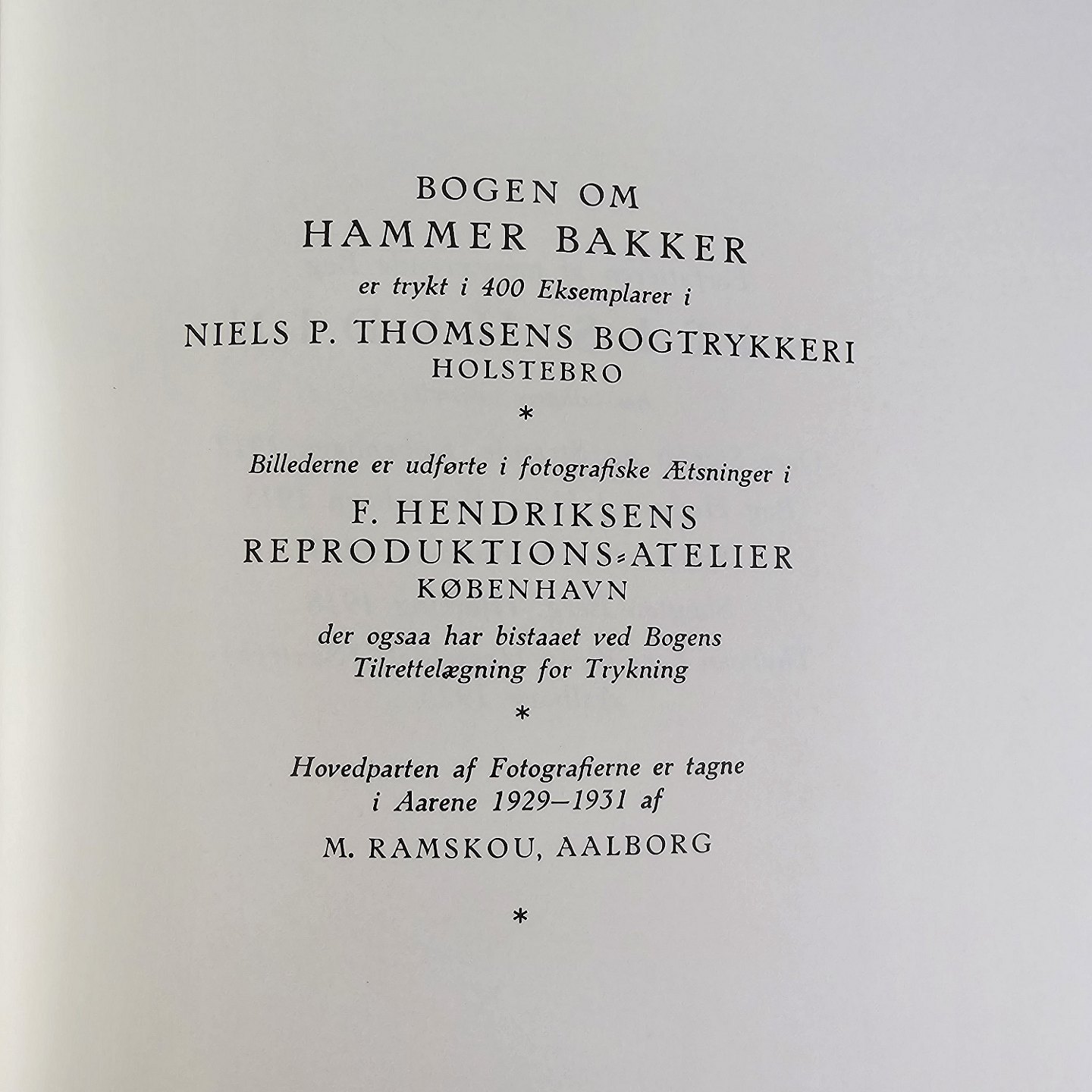 Anden udgave af Niels Hedin: Hammer Bakker, trykt i 400 eksemplarer