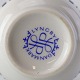 Stellet er fremstillet i ildfast glat porcelæn dekoreret med mørkeblå tangenter på hvid baggrund.