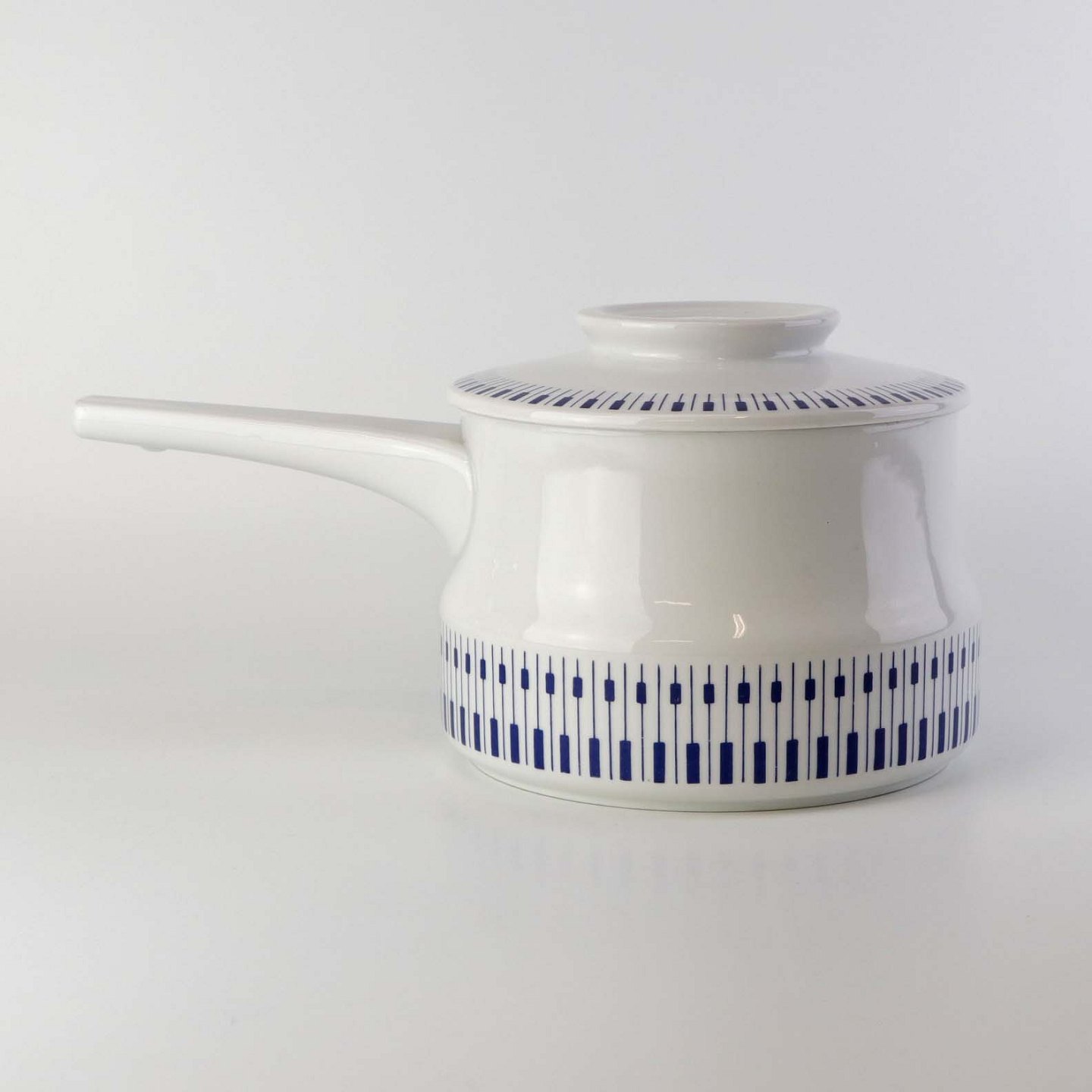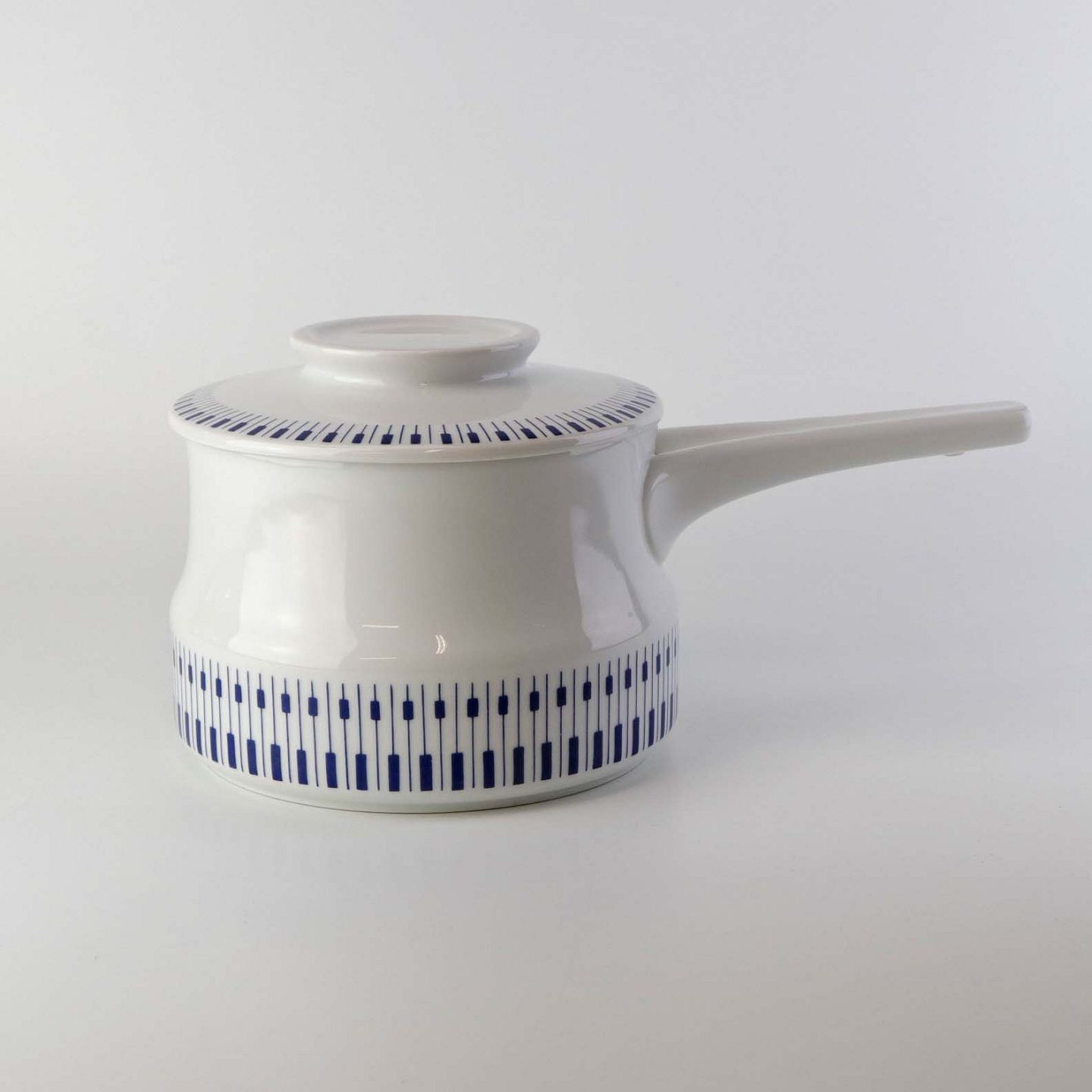 Kasserolle med låg og hank i porcelæn fra stellet Danild 64 - også kendt under navnet Tangent.