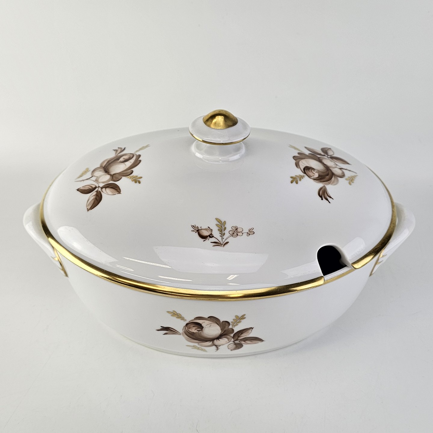 Terrin med låg i porcelæn fra stellet Brun Rose