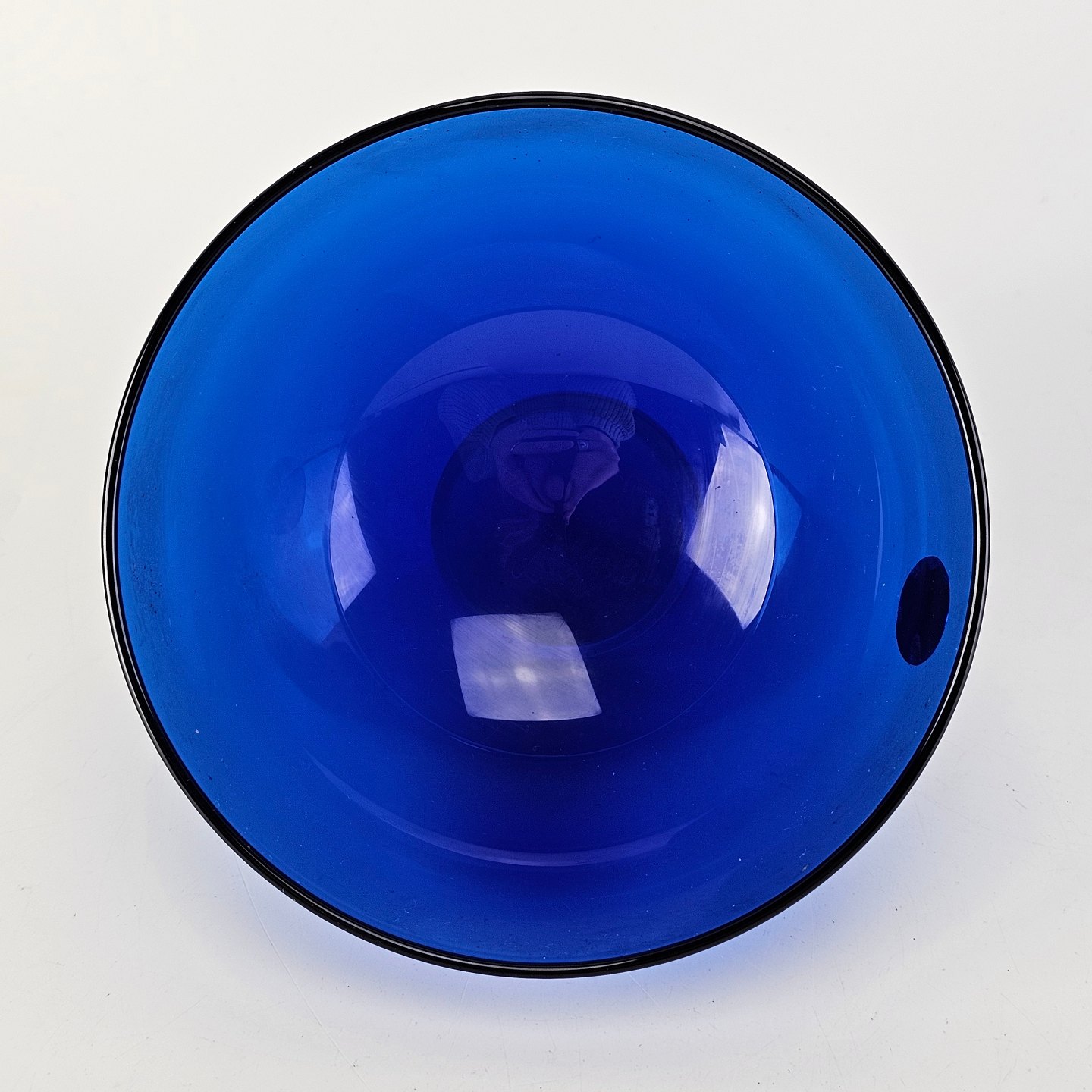 Harlekin skål i gennemsigtigt blåt glas med klart glas i bunden