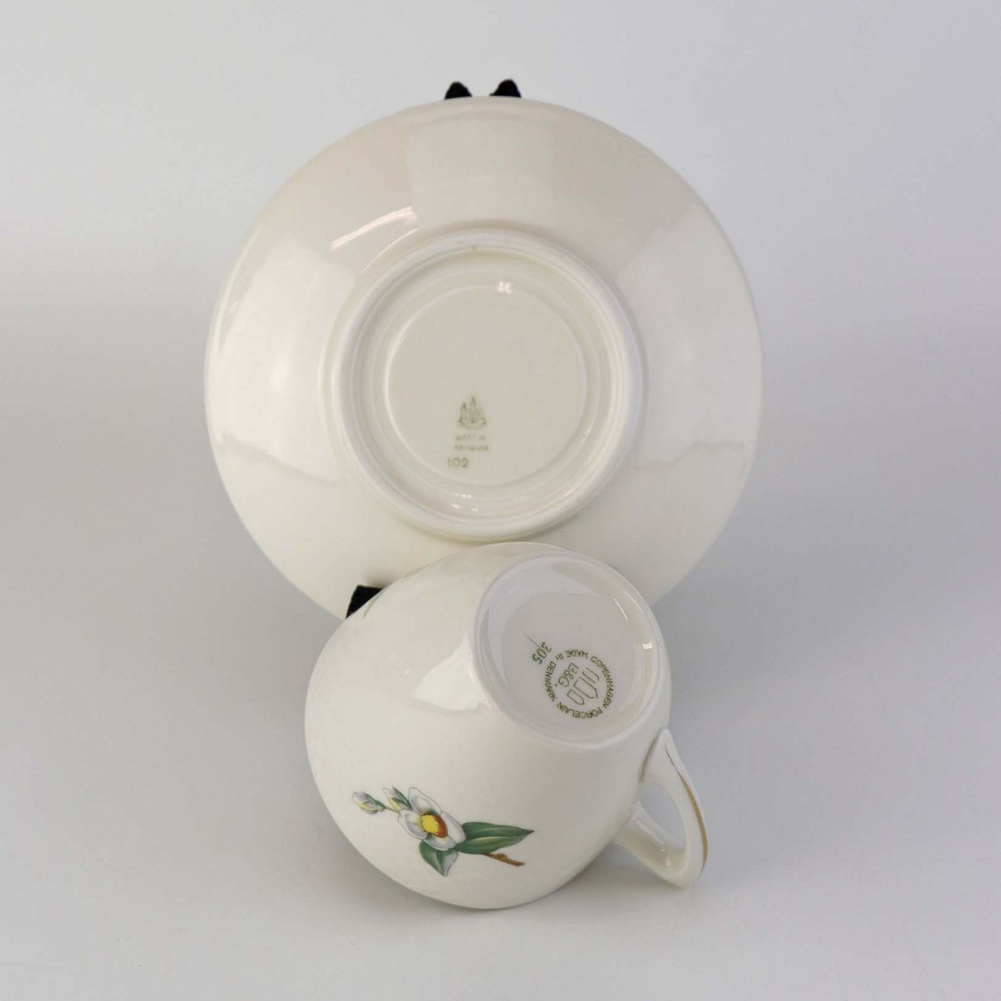 Kaffekop med underkop i porcelæn fra stellet Heimdal. Nr. 305 og 102