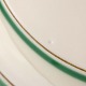 Service i glat cremefarvet porcelæn med grøn og sort kantstreg samt dekoration af blomster og grene i sort streg.
