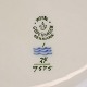 Fremstår med mindre ujævnhed i porcelæn på låget, brugsspor på skålens topkanten samt brun plet under glasuren under bunden af lågfadet.