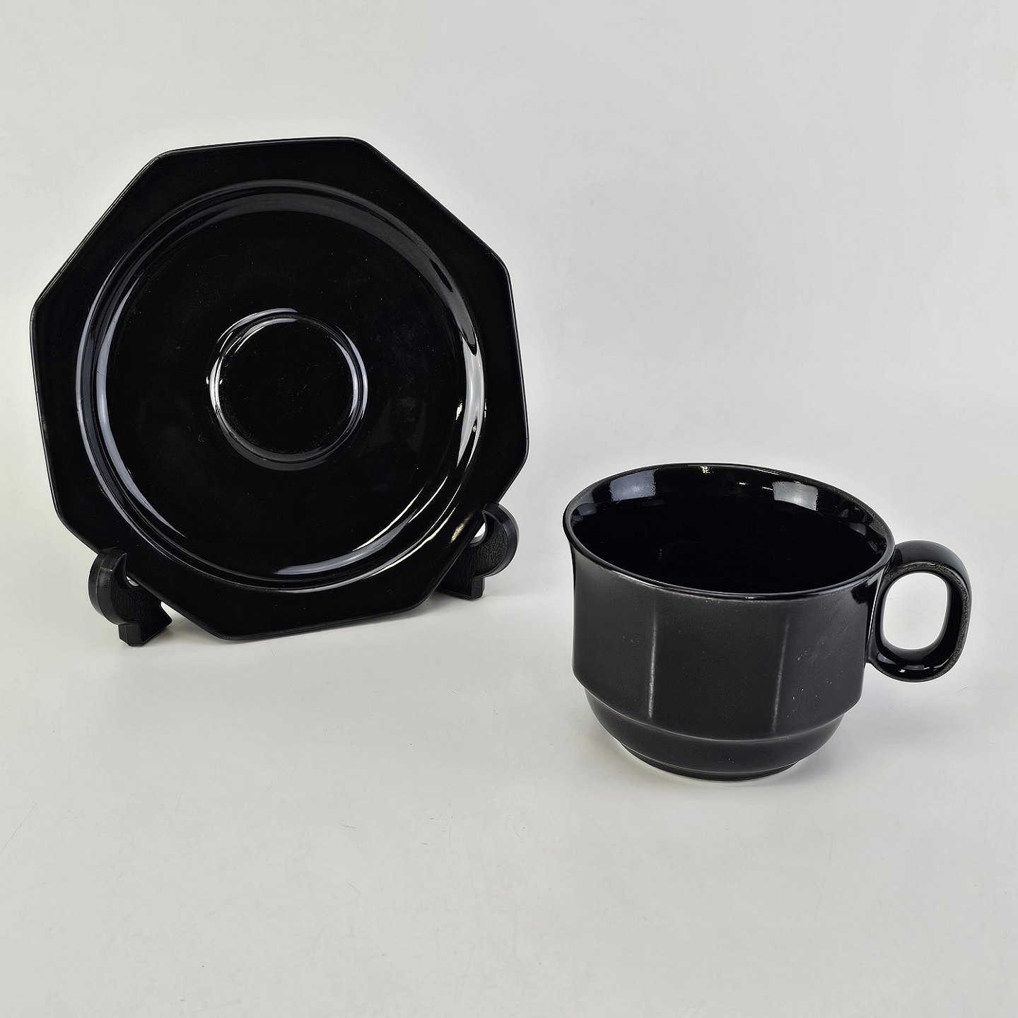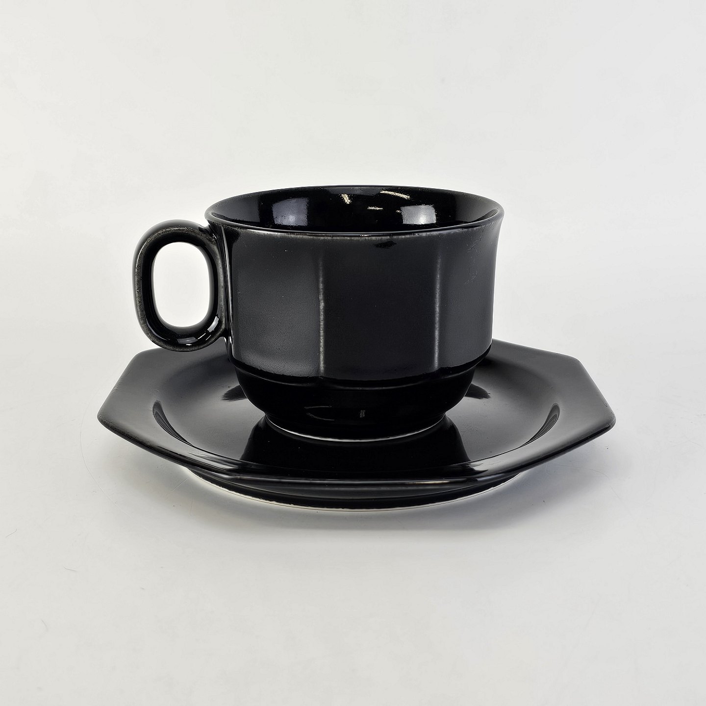 Stellet er i glaseret, kantet stentøj og findes i både sort og hvid