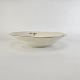 Balder er cremefarvet porcelæn i skælform, dekoreret med hyben og guldkant.