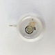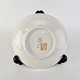 Balder er cremefarvet porcelæn i skælform, dekoreret med hyben og guldkant.