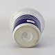 Lille urtepotteskjuler i glat hvidt porcelæn dekoreret med blå striber. Nr. 1855/6102