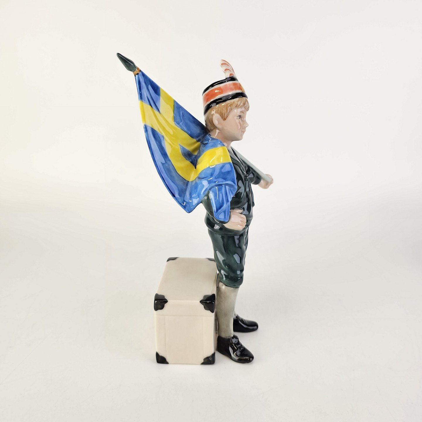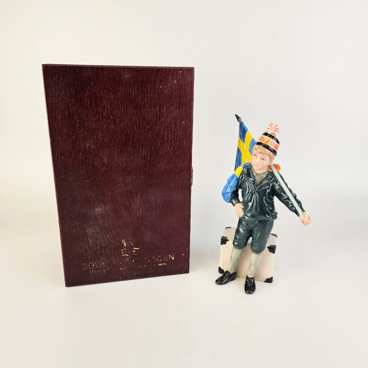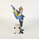 Pontus figur af porcelæn med motiv af en dreng med et svensk flag