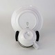 Service i glat hvidt porcelæn dekoreret med sort bort og gylden blomsterknop.