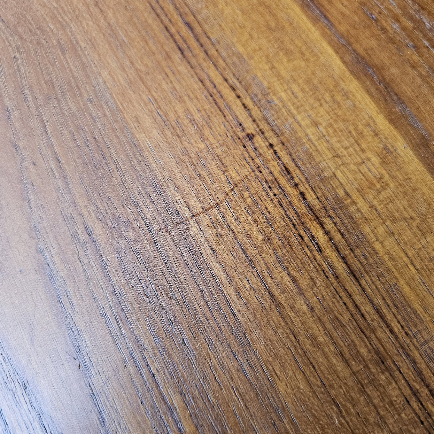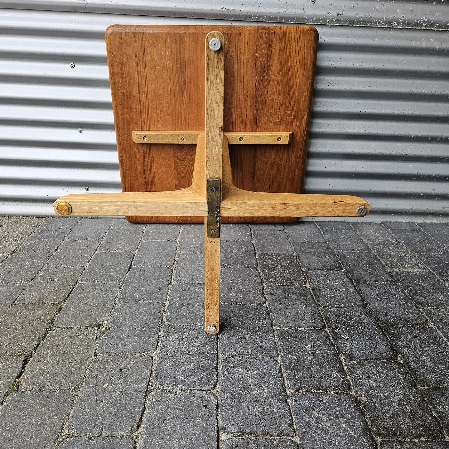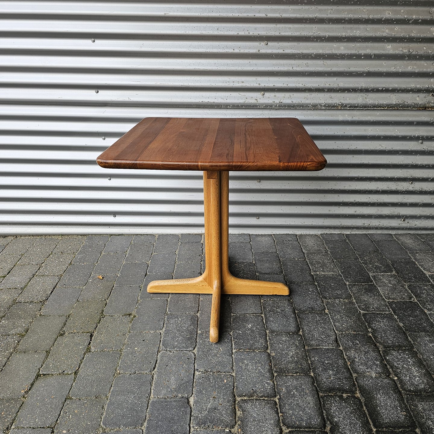 Kvadratisk spisebord i massiv teak med firepasfod i egetræ