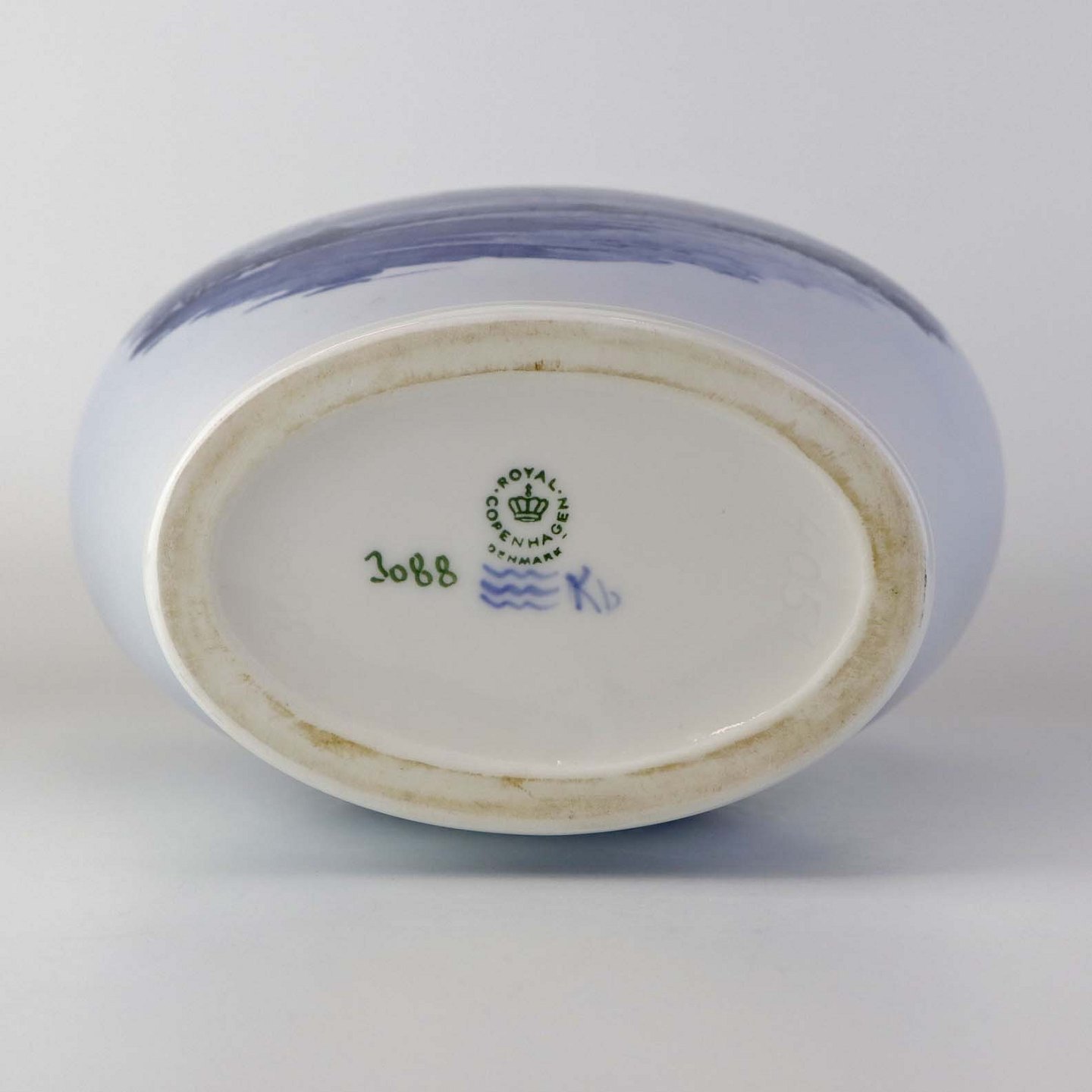 Oval jubilæumsvase i kongelig porcelæn med motiv af Danfoss fabriksbygninger. Nr. 3088