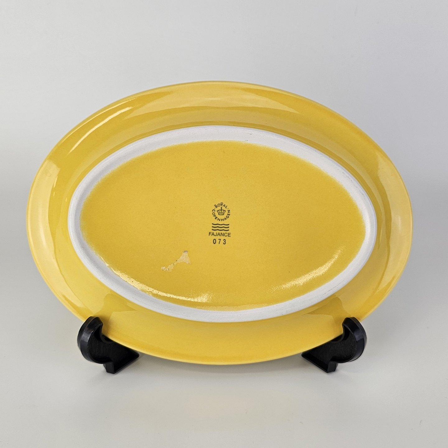 Ovalt fad i gul fajance fra stellet Ursula