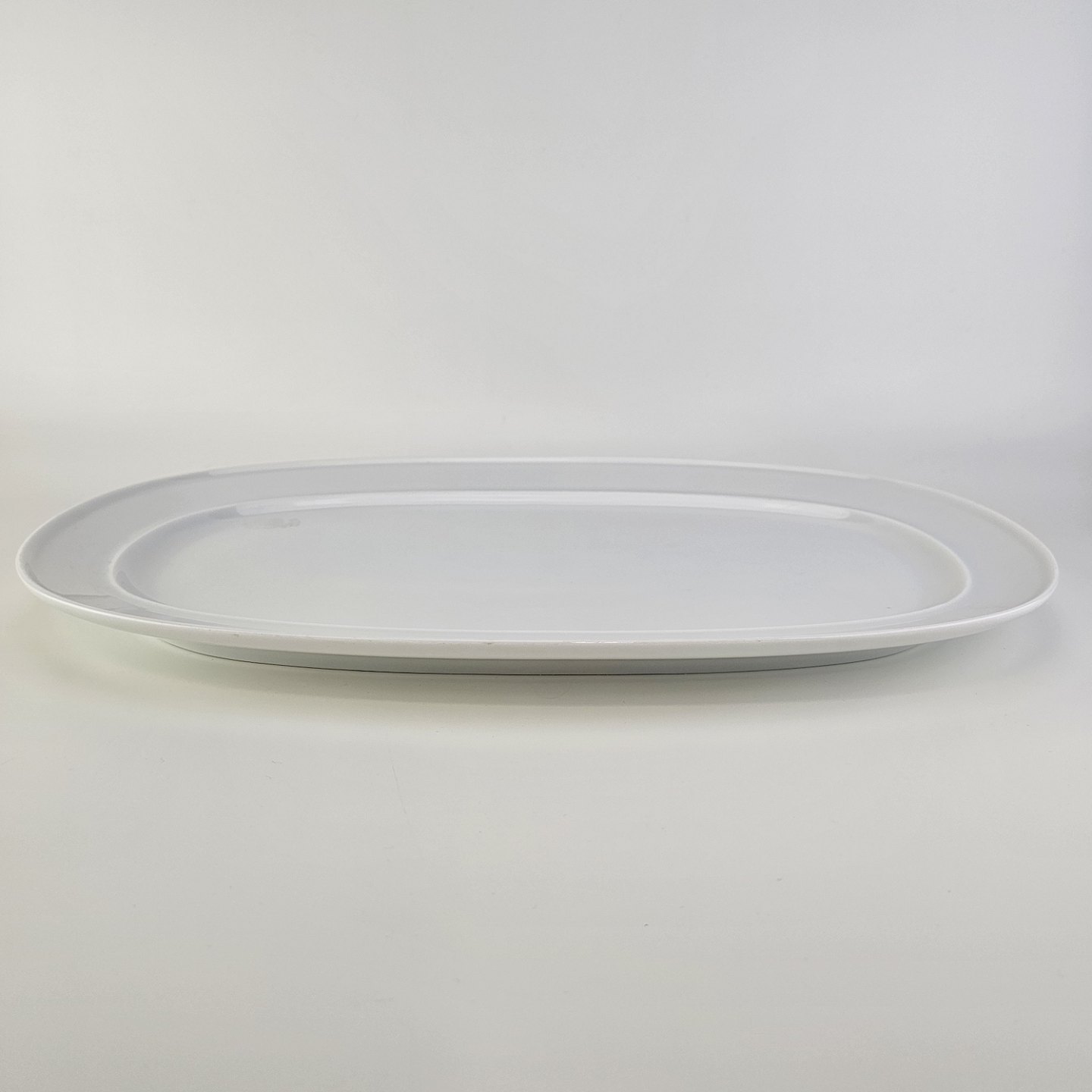 Rektangulært fad med runde hjørner i porcelæn fra stellet Hvid Koppel