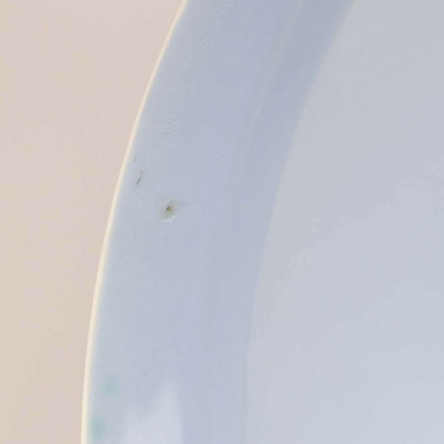Fremstår med en enkel ujævnhed på bagsiden og brugsspor i bunden på indvendig side.