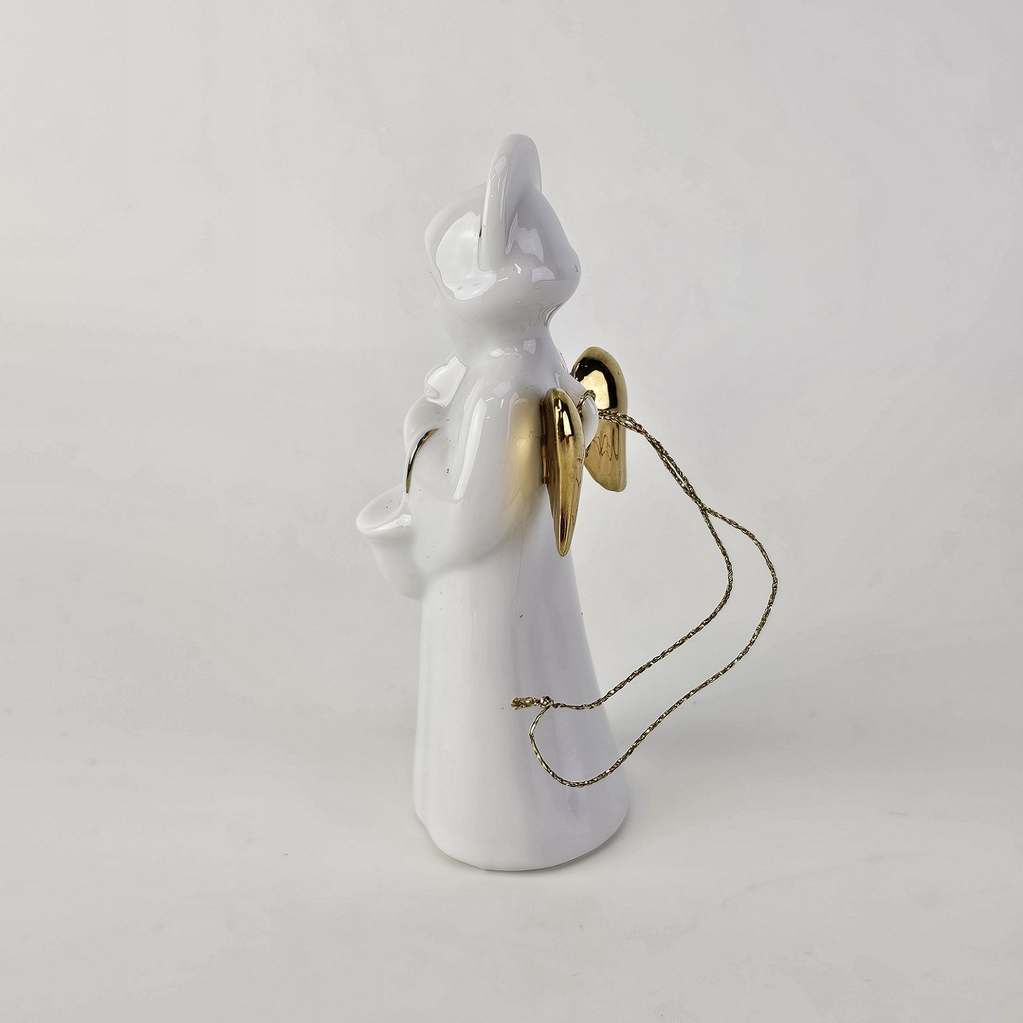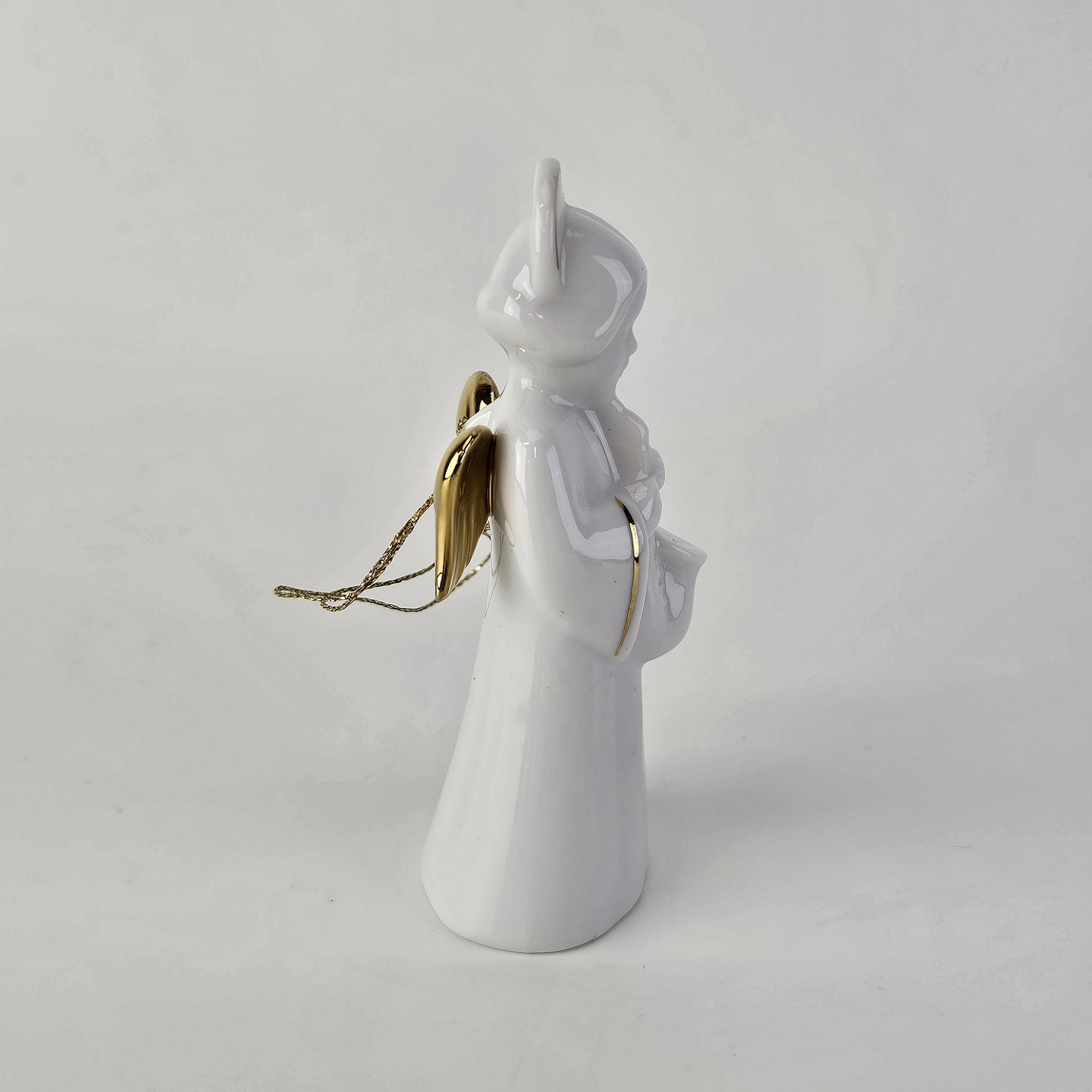 Figur med motiv af en engel som spiller på saxofon. Figuren er i hvidt porcelæn med forgyldte vinger og detaljer i 24 karat guld.