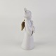 Figur med motiv af en engel som spiller på mandolin. Figuren er i hvidt porcelæn med forgyldte vinger og detaljer i 24 karat guld.