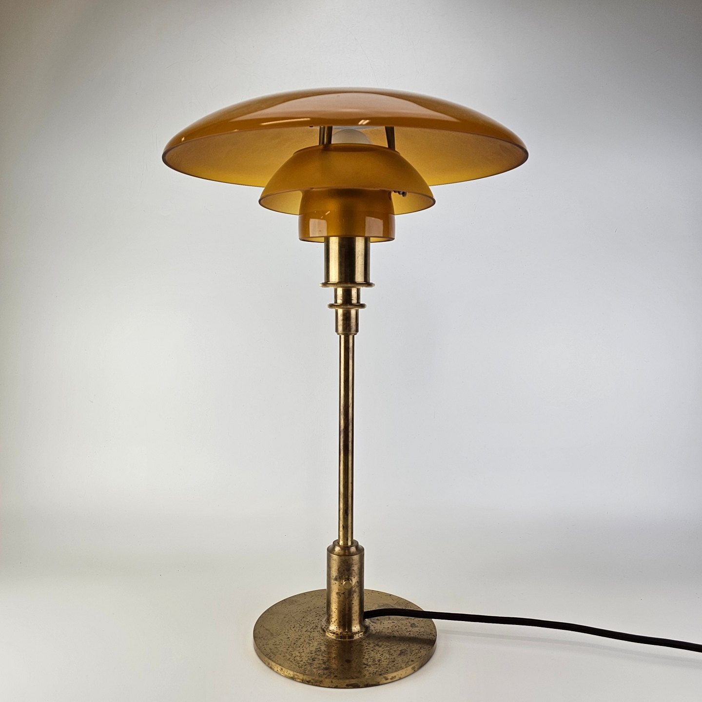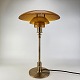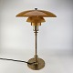 Bordlampe med skærm af mundblæst ravfarvet etlagsglas og fod af strøgslebet messing Limited edition udført efteråret 2018