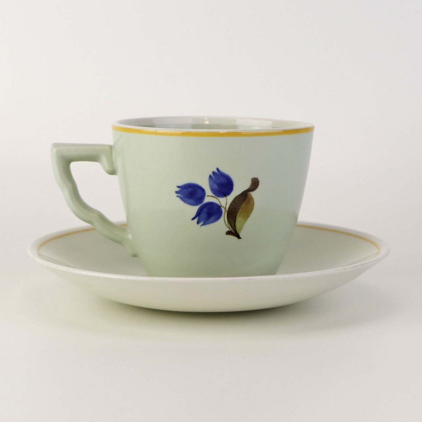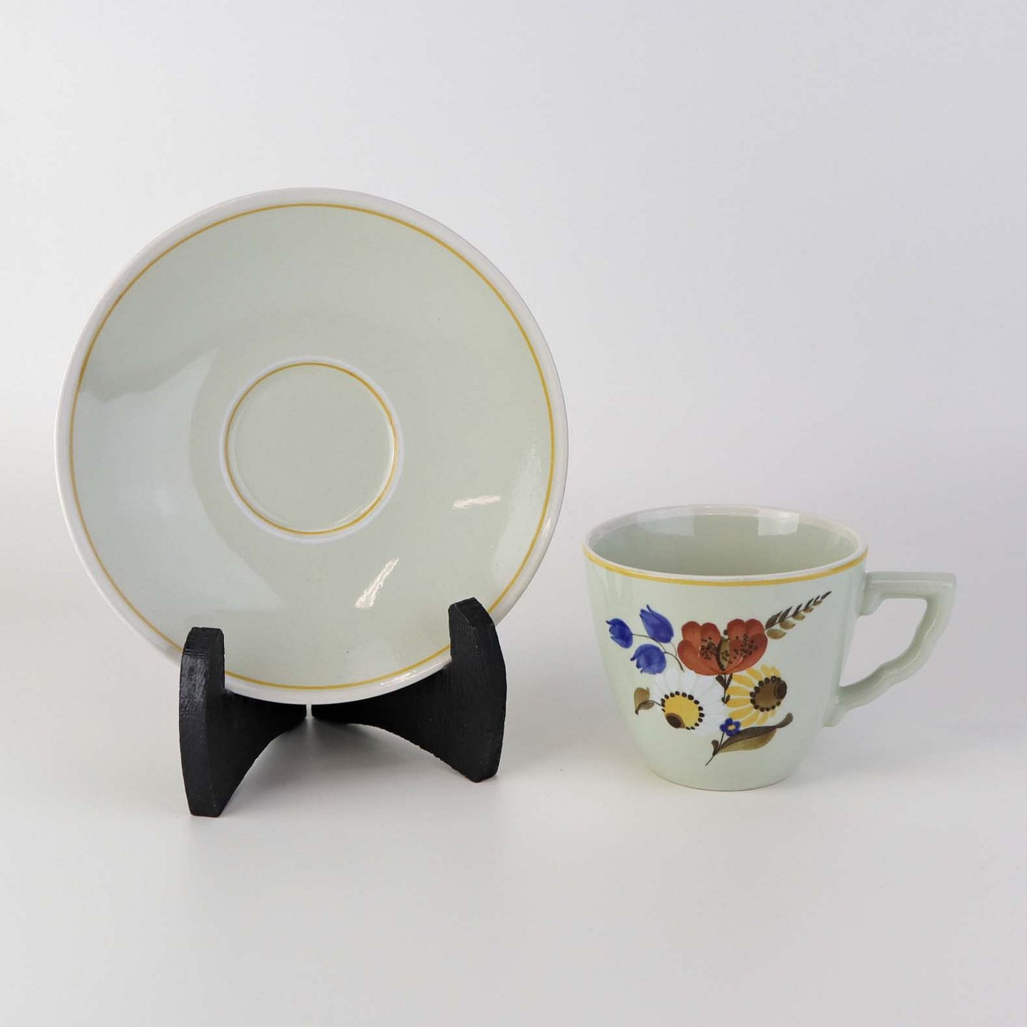 Kaffekop med underkop i fajance fra stellet Frederiksberg. nr. 265