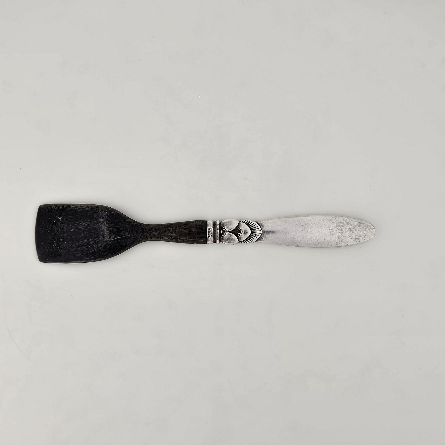 Kaktus barneske formet som skovl med hoved i horn og skaft af sølv