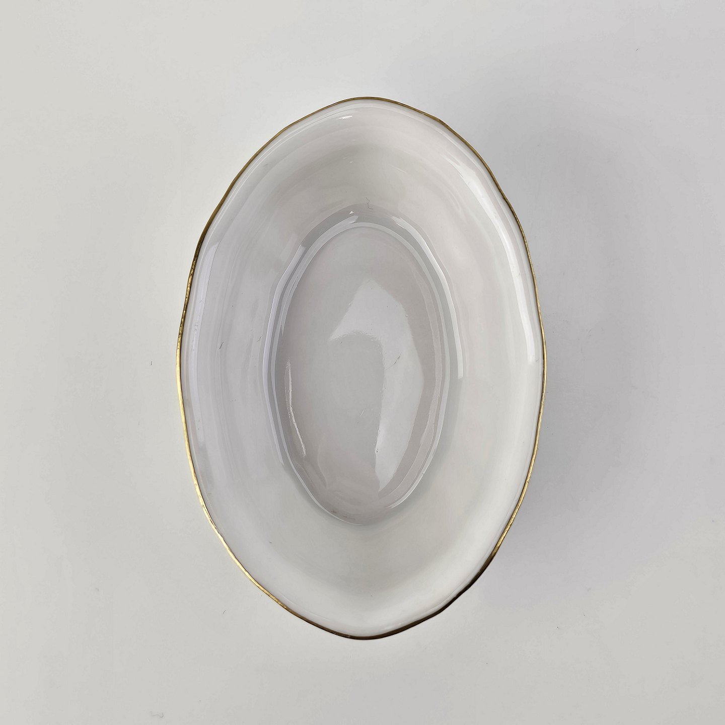 Eremitage er porcelæn dekoreret med hvidtjørn og guldkant