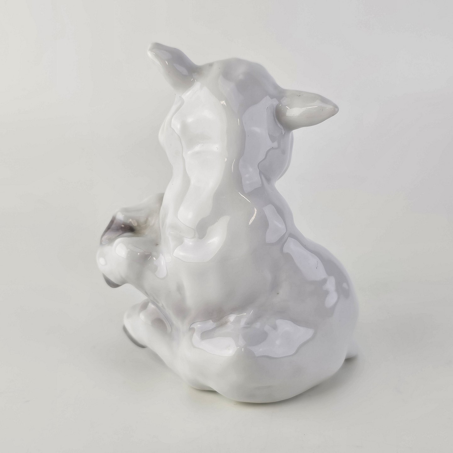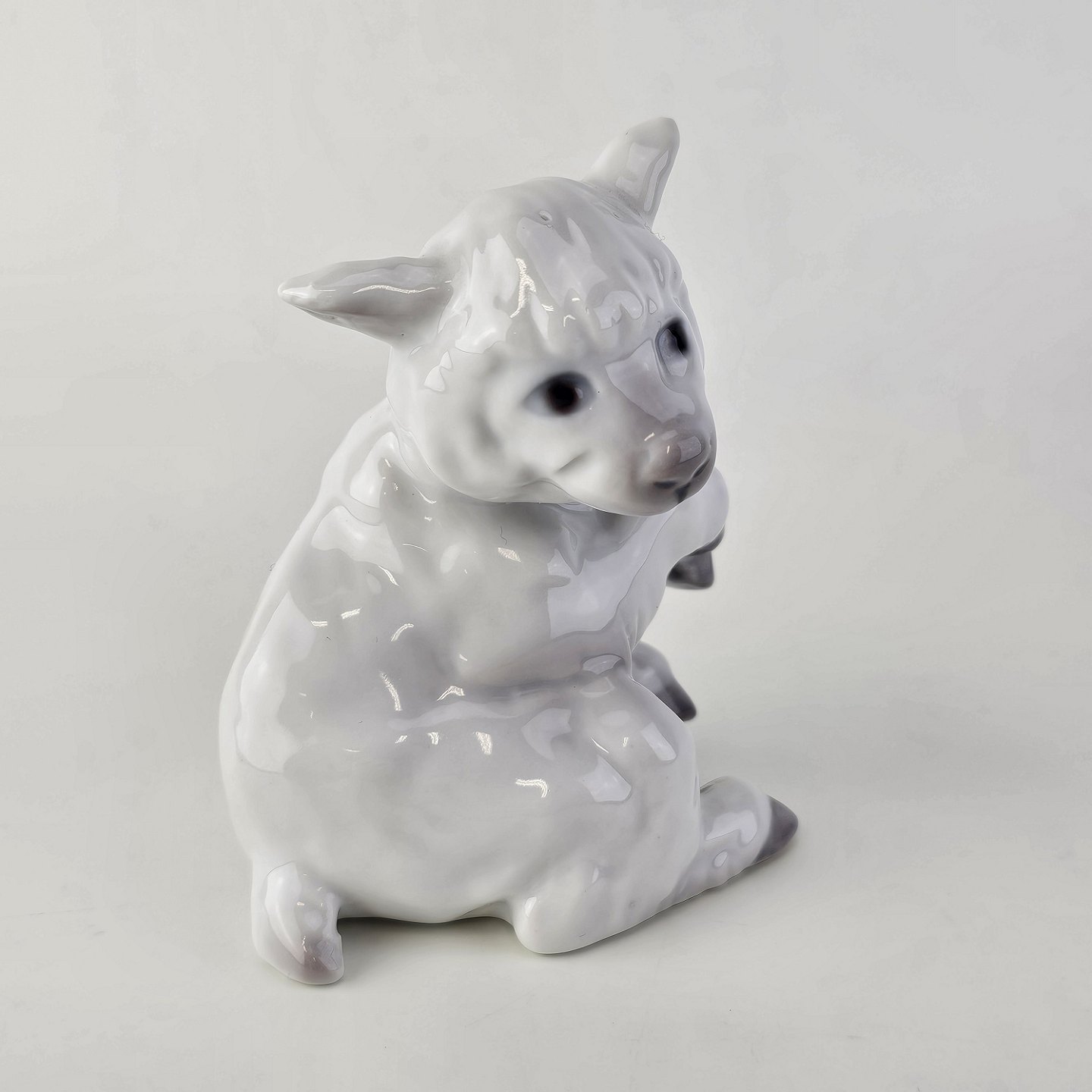 Figur i porcelæn med motiv af et siddende lam
