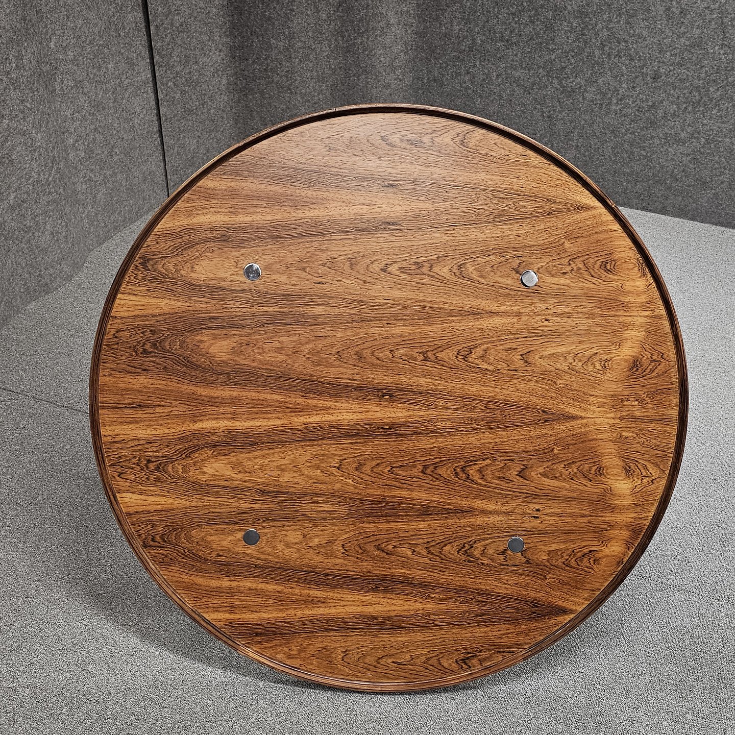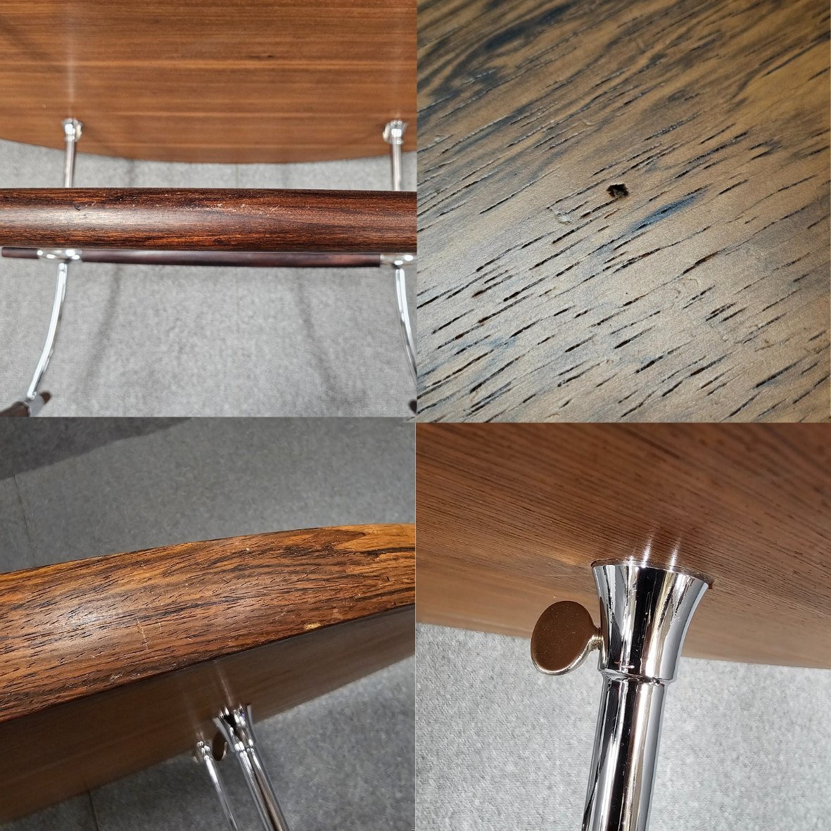 Stokkebord ligeledes med stel i palisander og forkromet stål og med bordplade af palisander.
