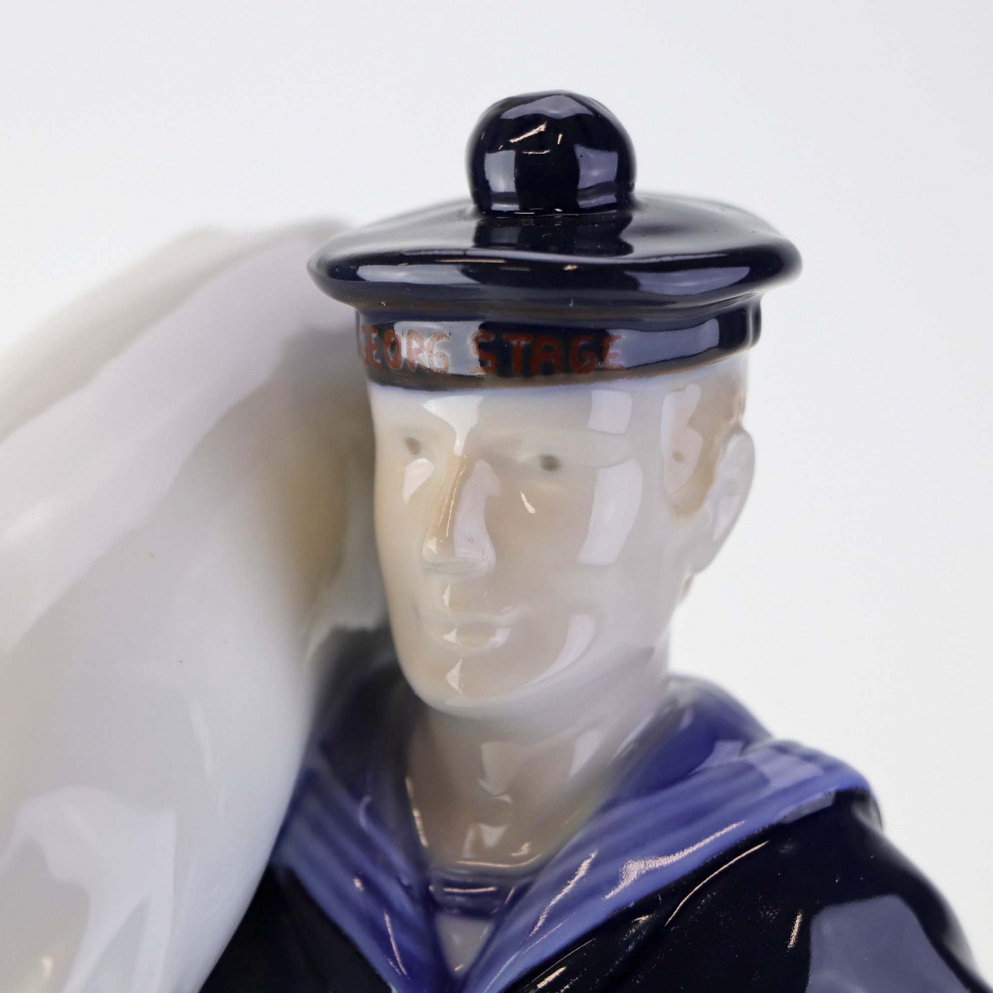 Figur i porcelæn med motiv af Matros med vadsæk fra skibet George Stage. Nr. 2456