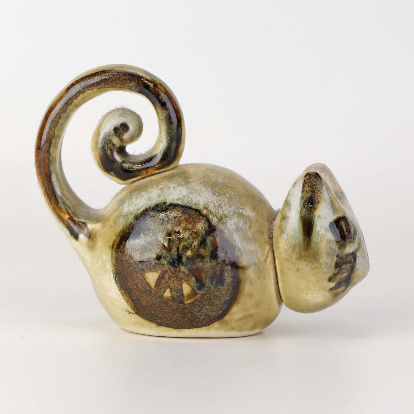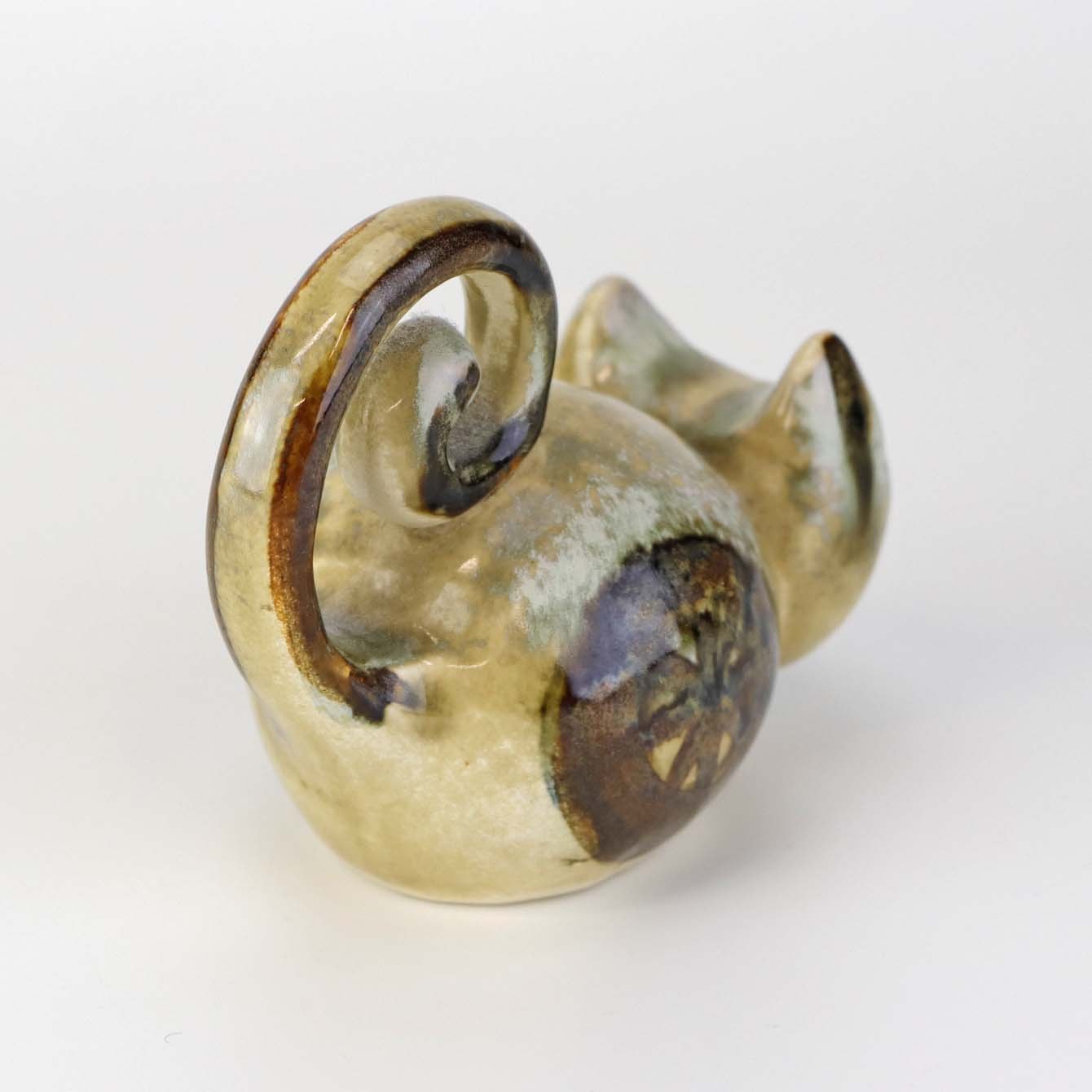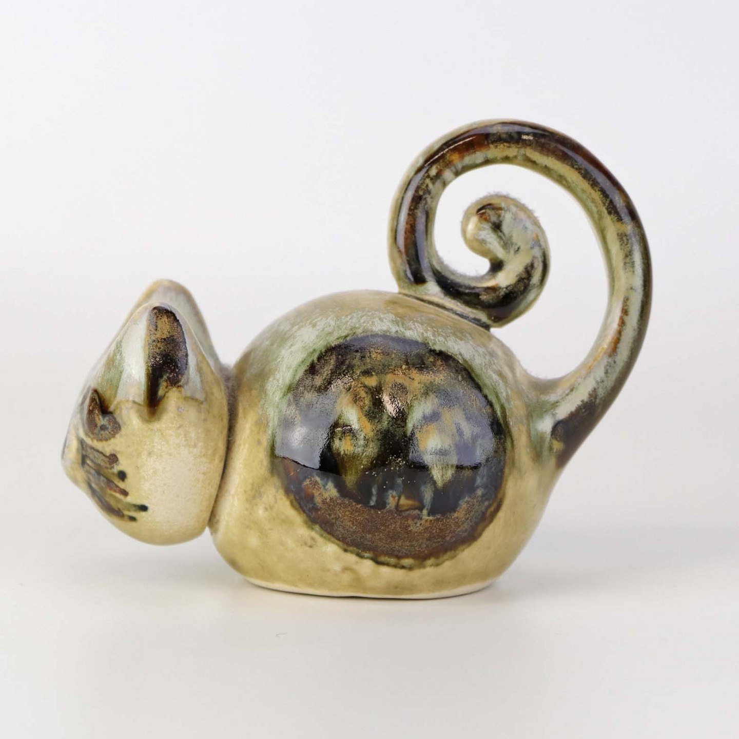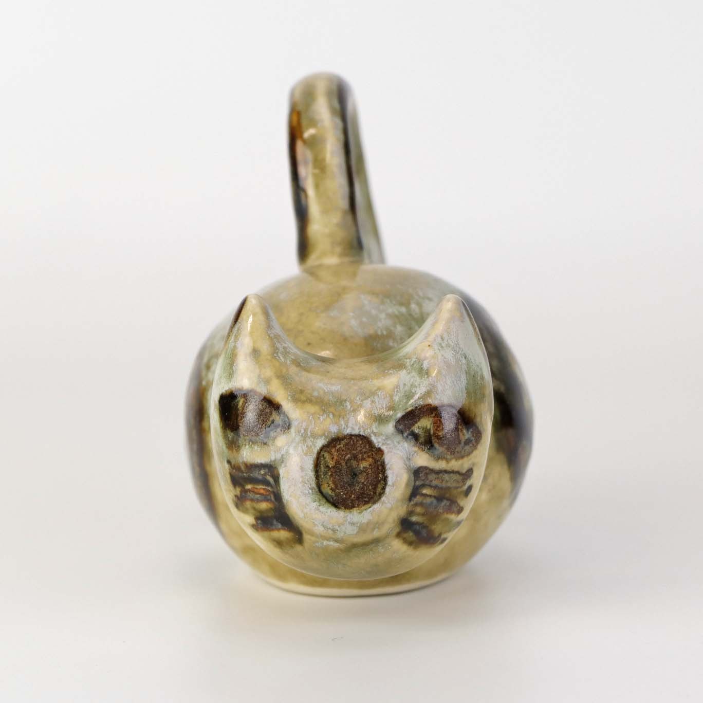 Figur i glaseret keramik med motiv af en kat