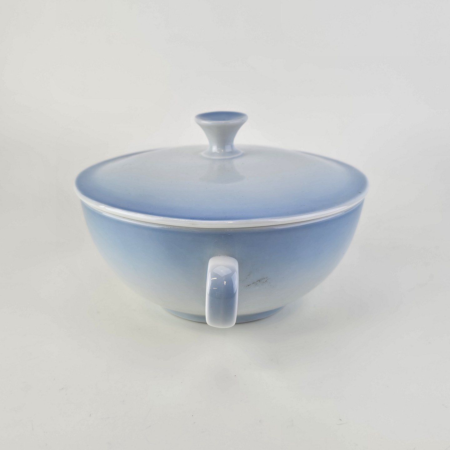 Blå tone er fremstillet af hotelporcelæn, glaseret hvidt med blå nuancer og dekoreret med skel lignende mønster.