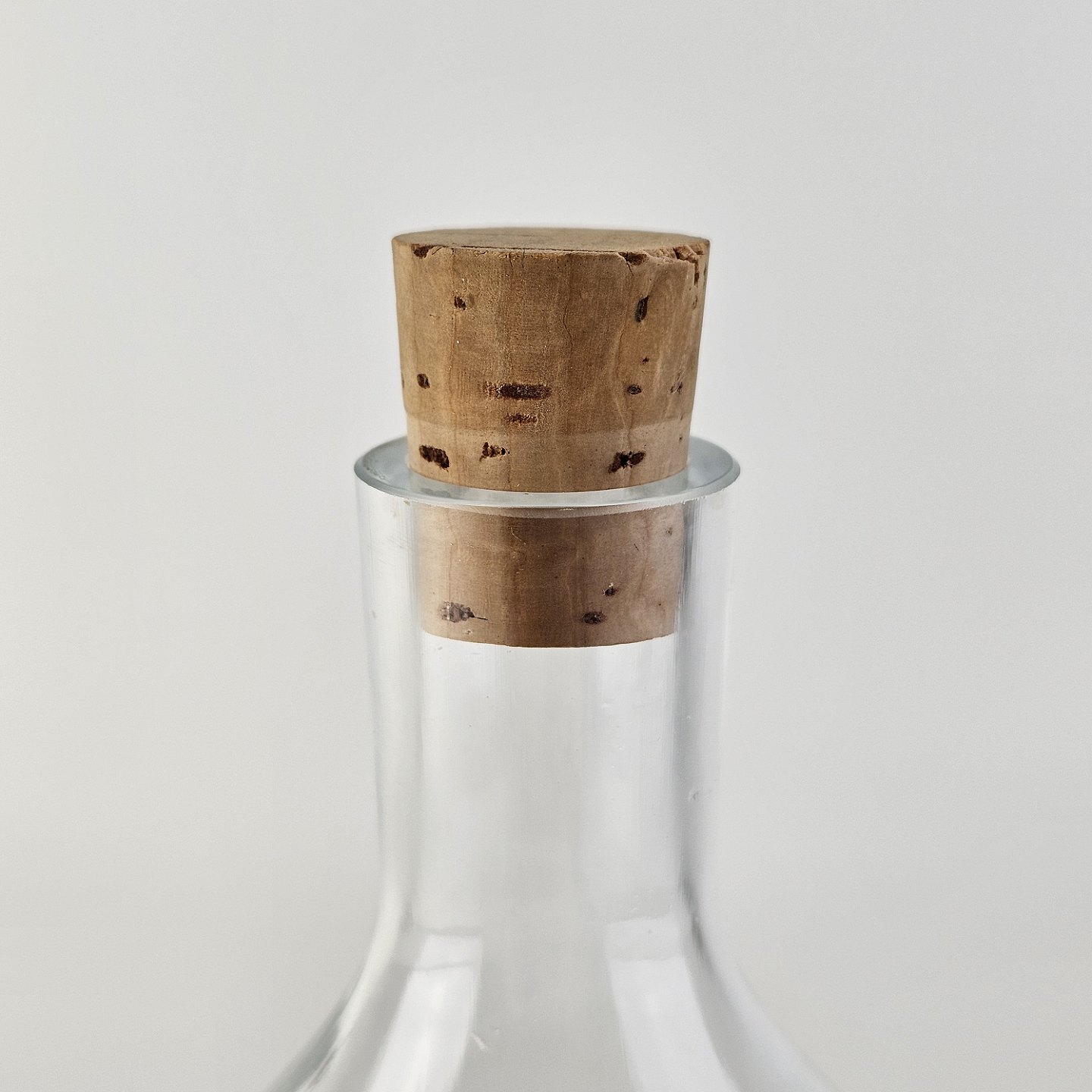 Brændevinsflaske med korkprop og teksten 1842-1967