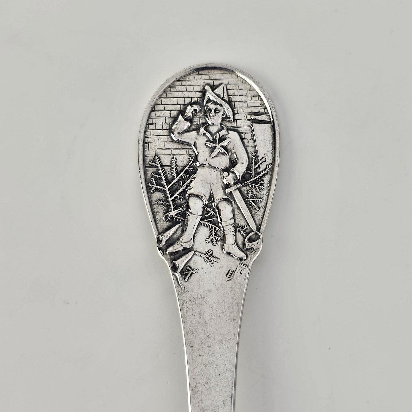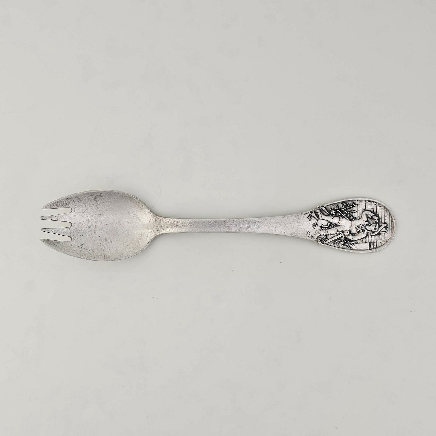 H.C. Andersen barnegaffel i sølv med motiv fra eventyret Grantræet