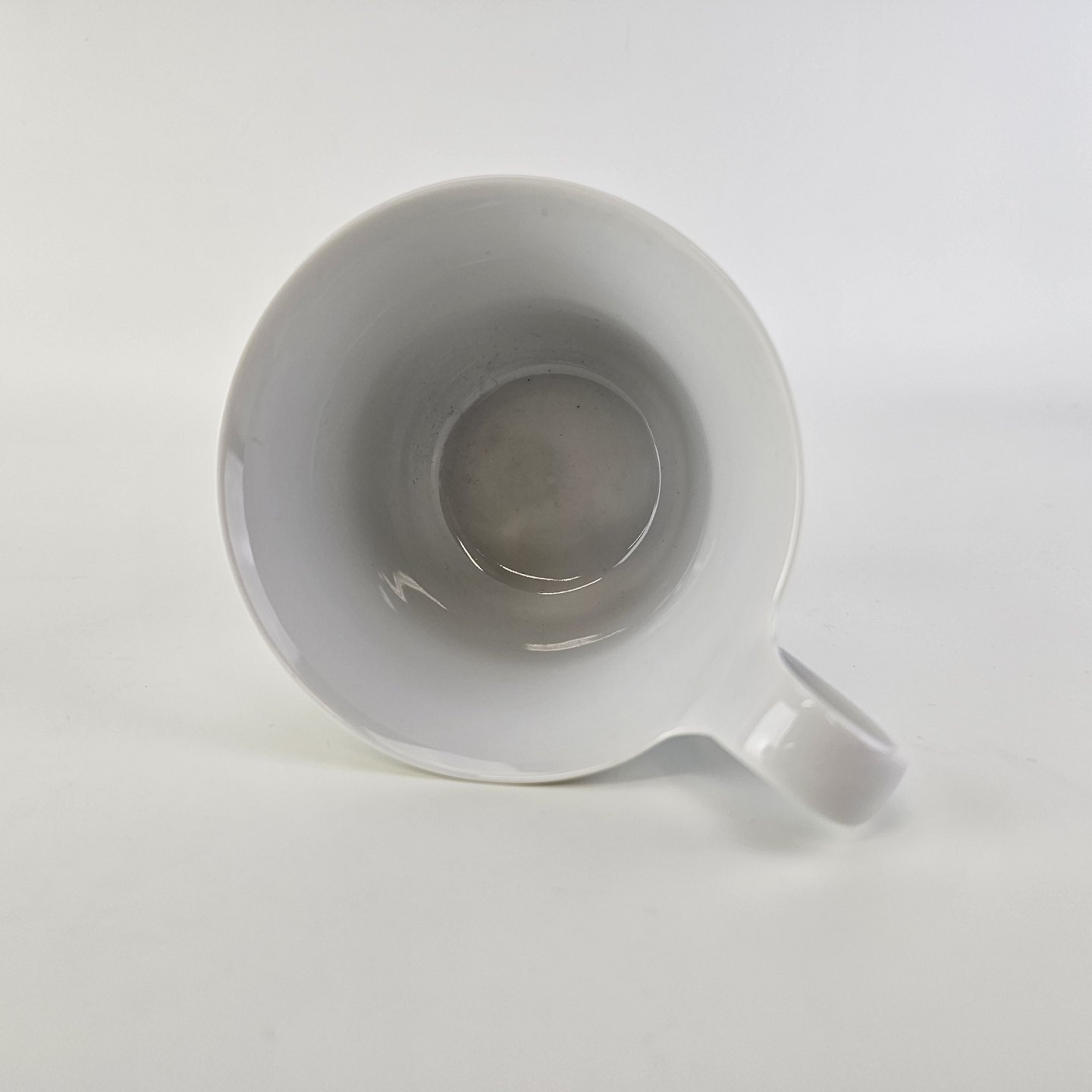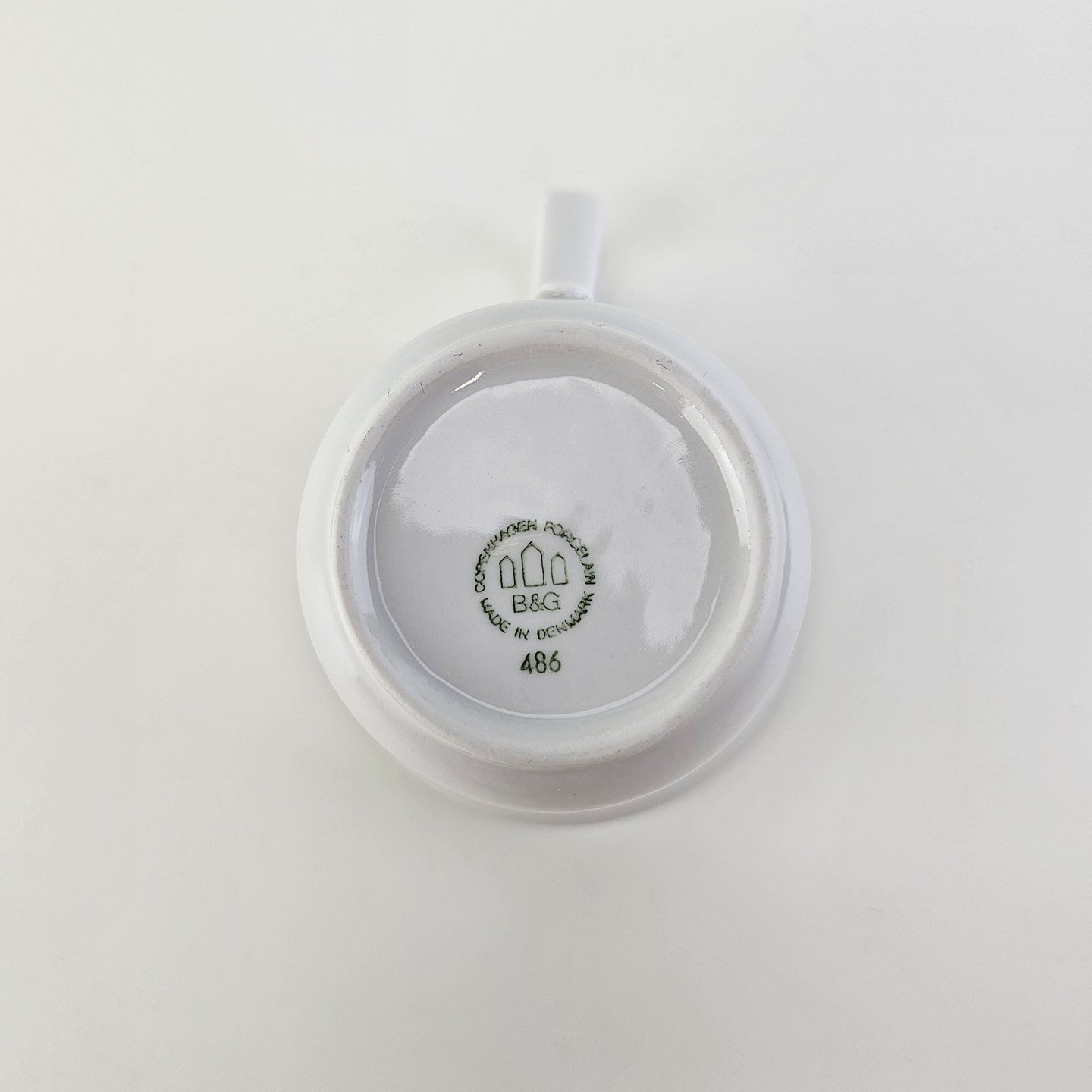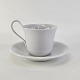 Kop med høj hank og underkop i glat hvidt porcelæn