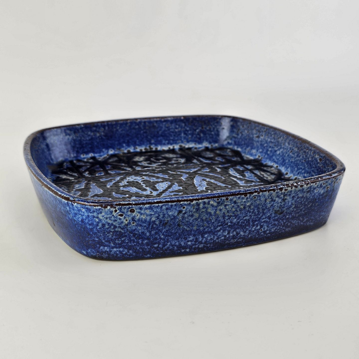Firkantet bordfad i fajance fra Baca serien med mønster i blå og sort