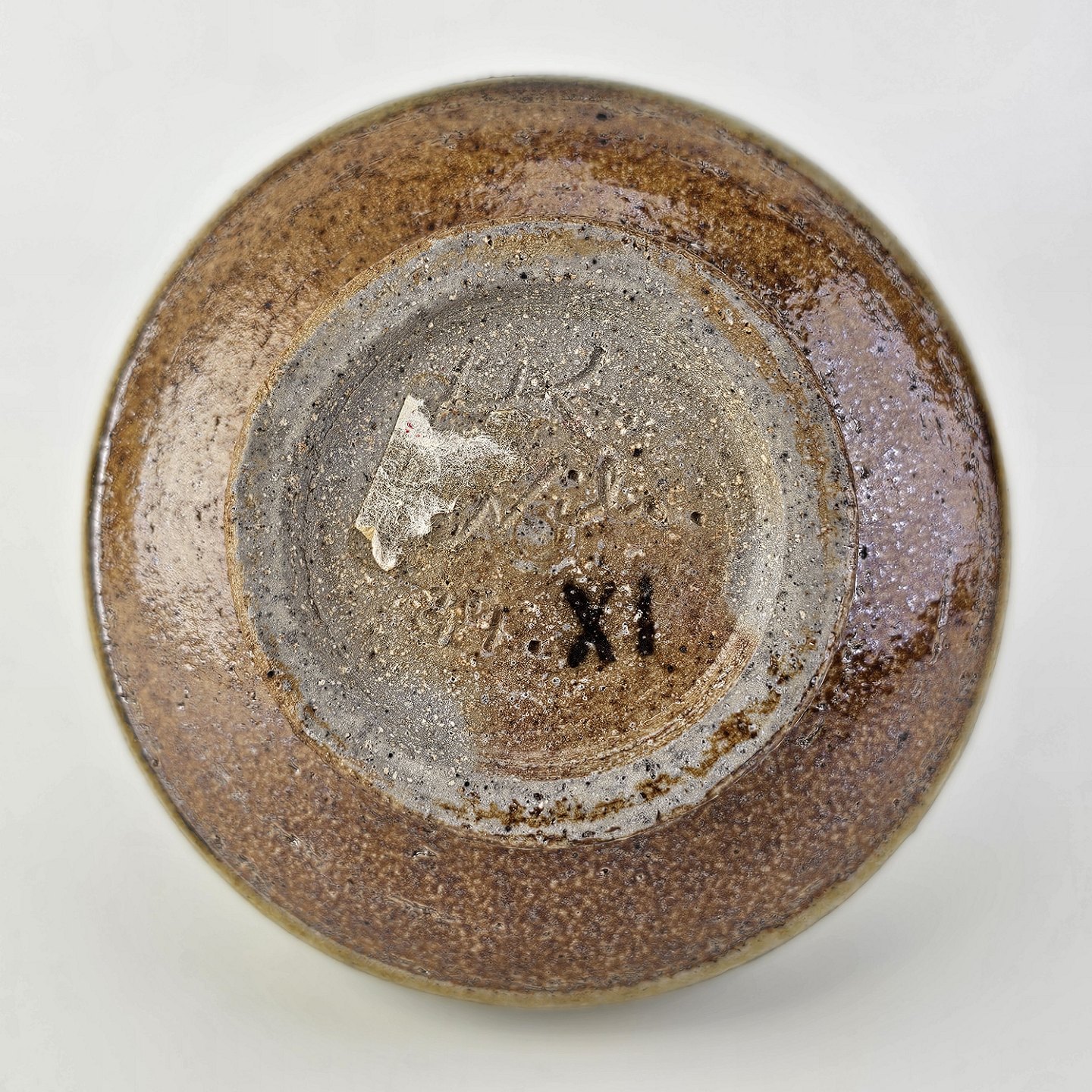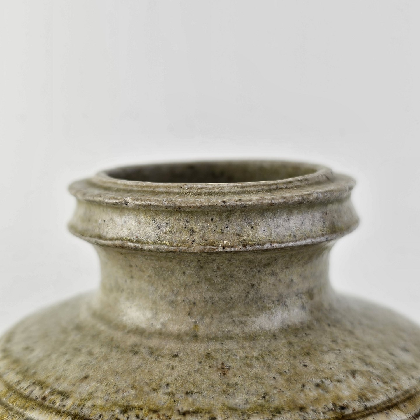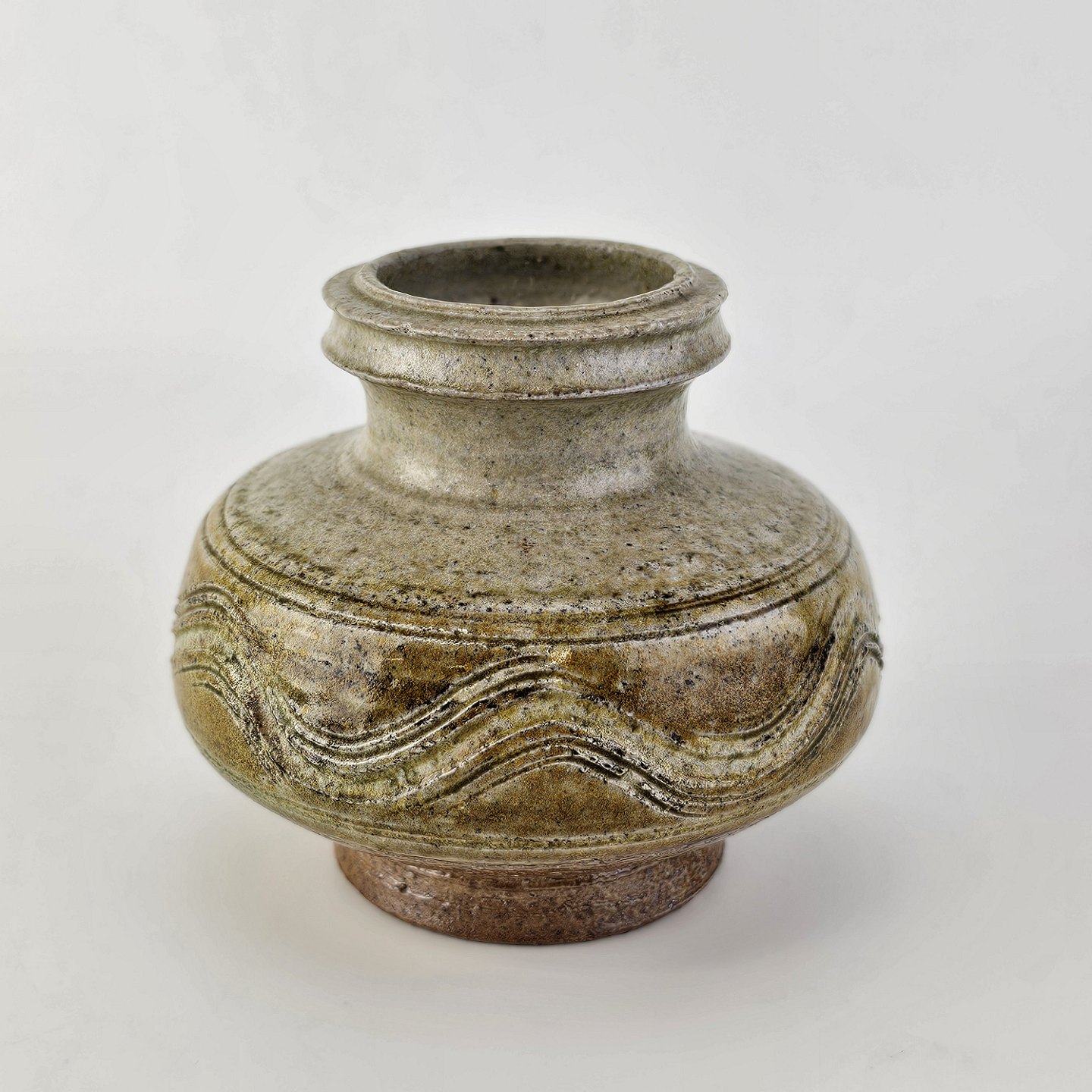 Vase smal fod og top i grålig/brunlig glasur