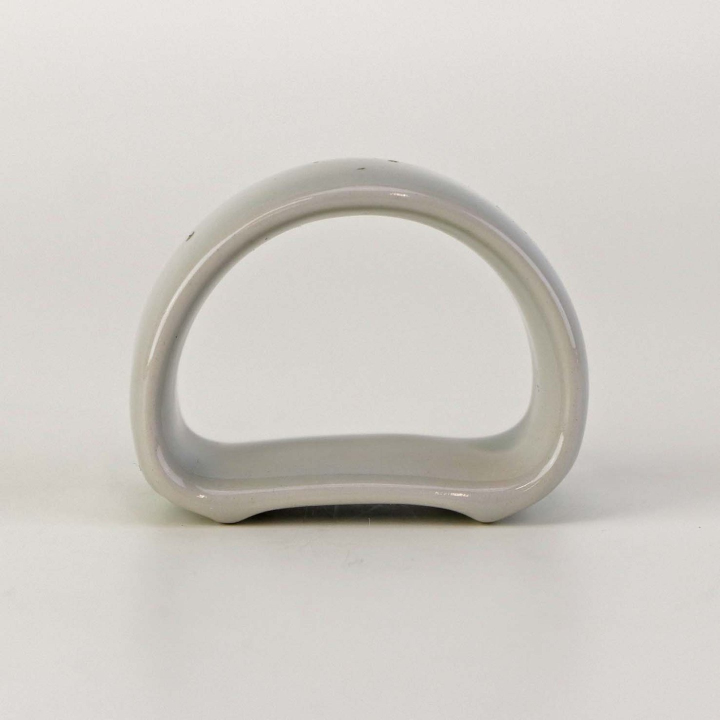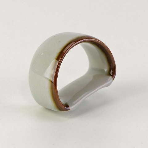 Diskos er af ovnfast stentøj. Stellet er gråt og håndmalet med brune og grønlige detaljer.