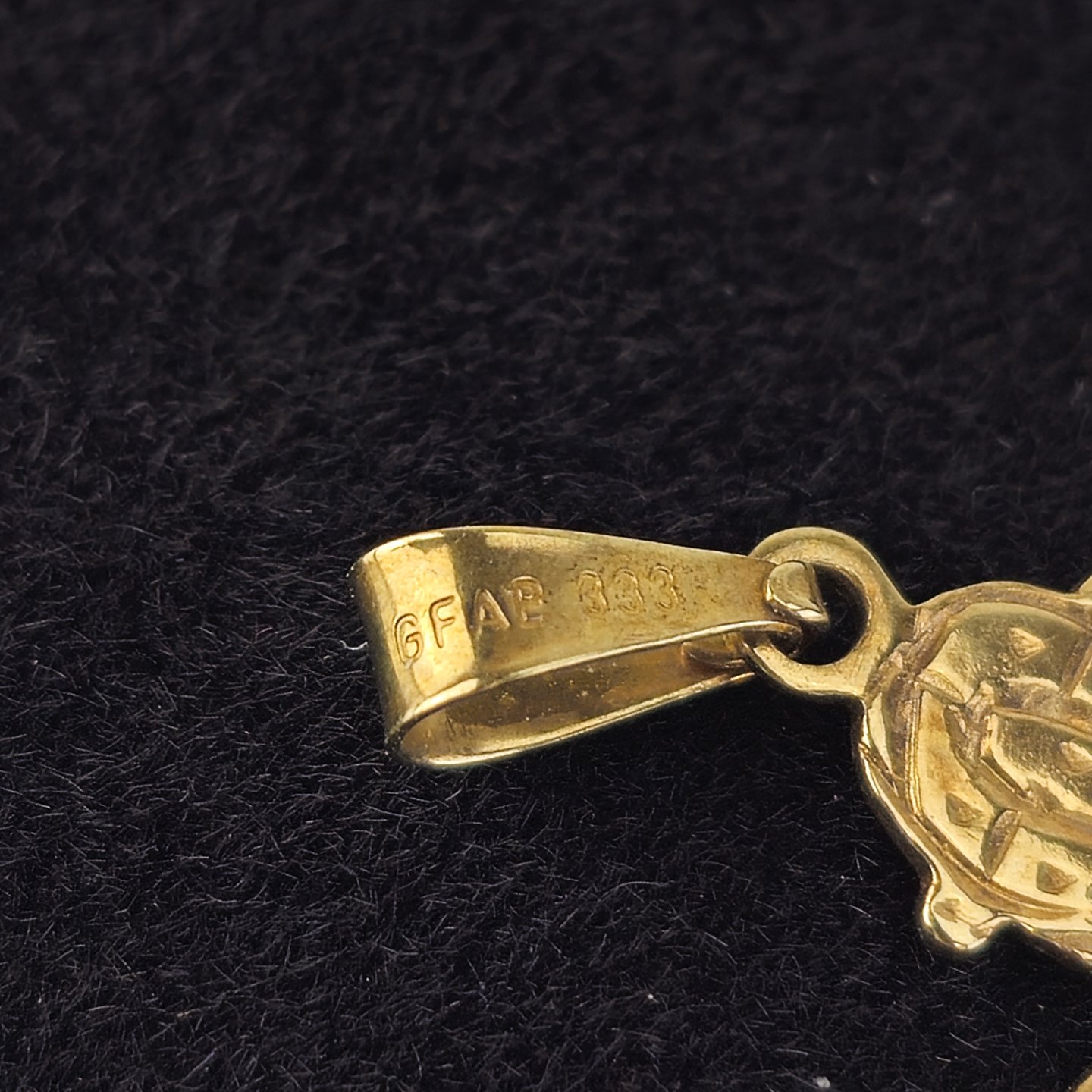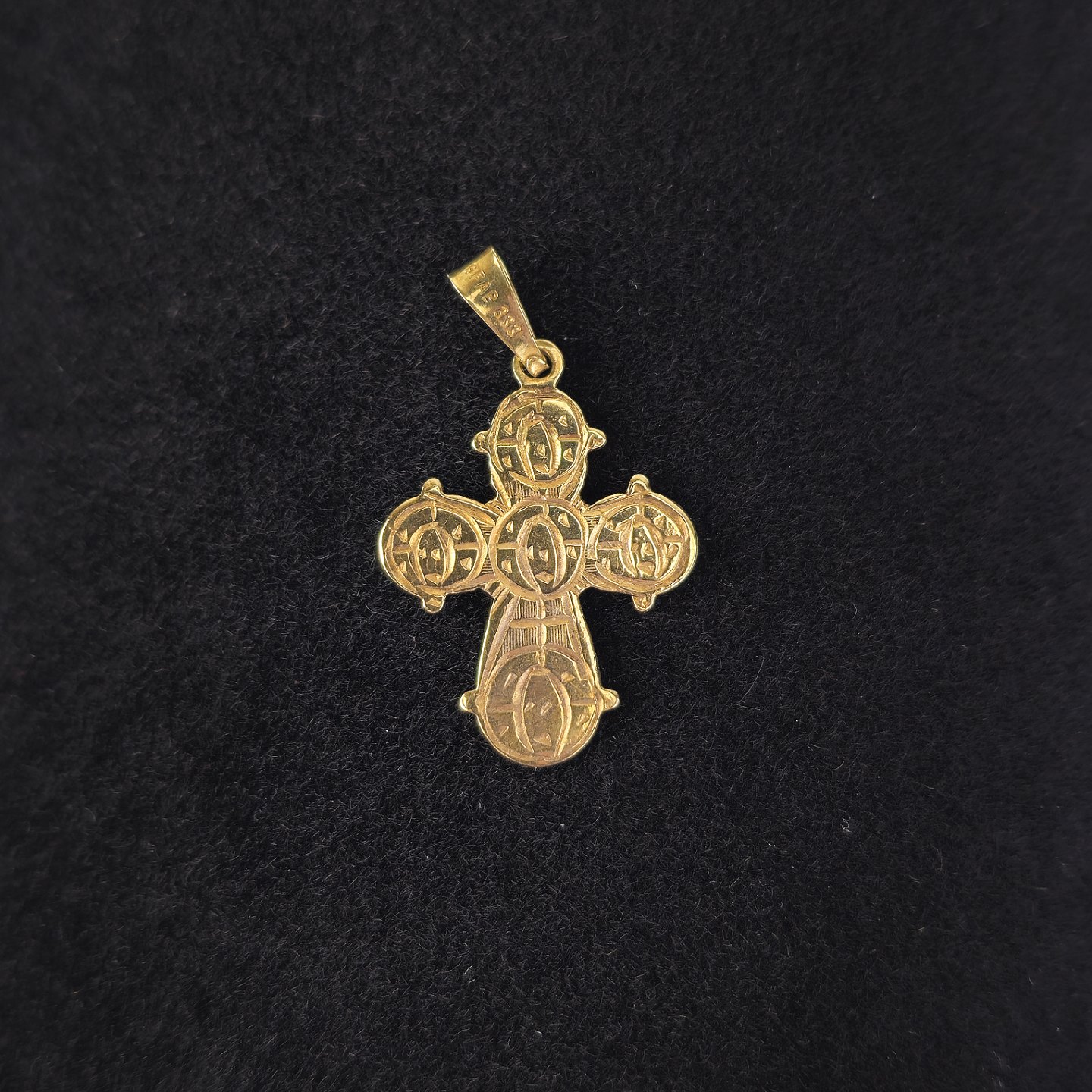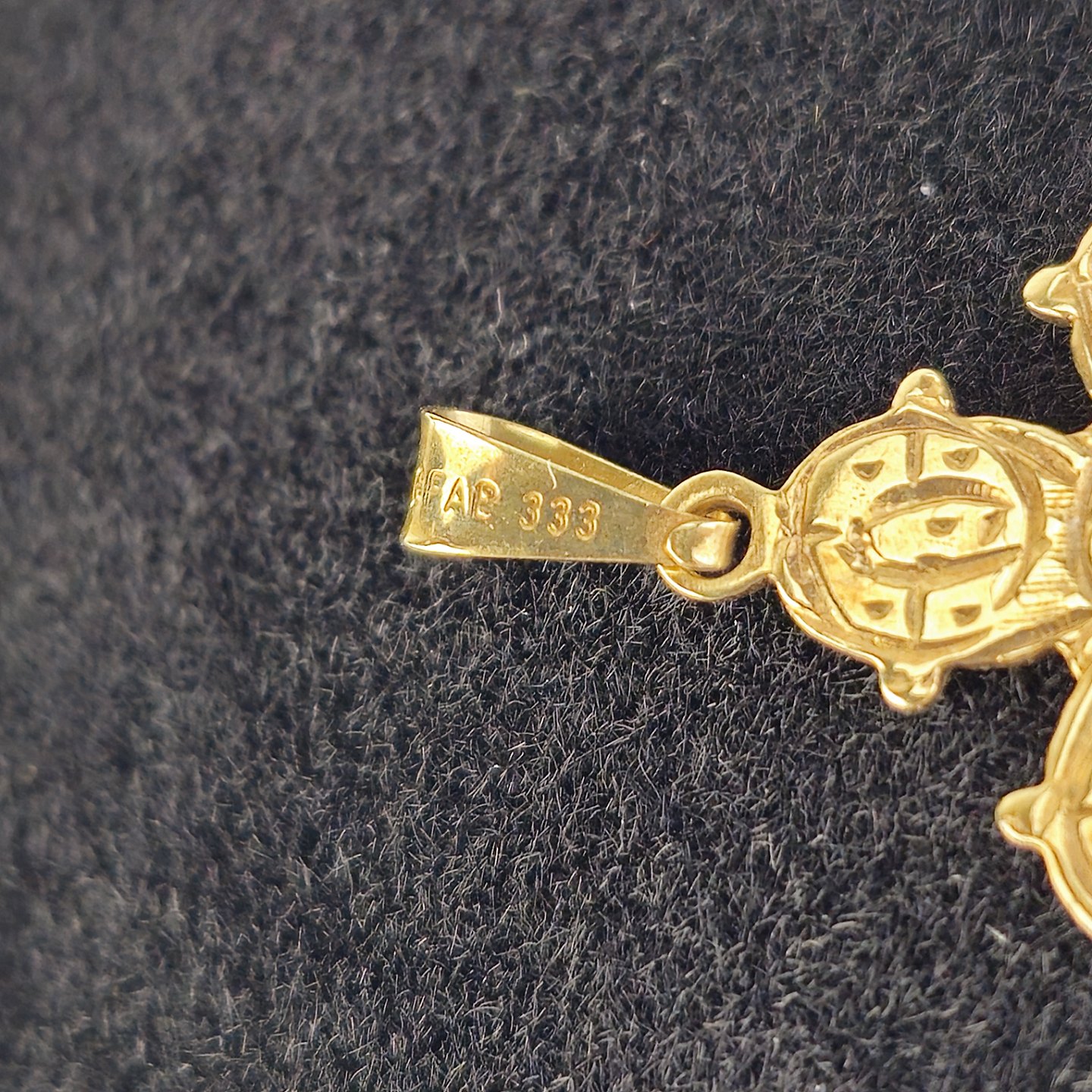 Kors vedhæng i 8 kt guld med motiv af Jesus på korset