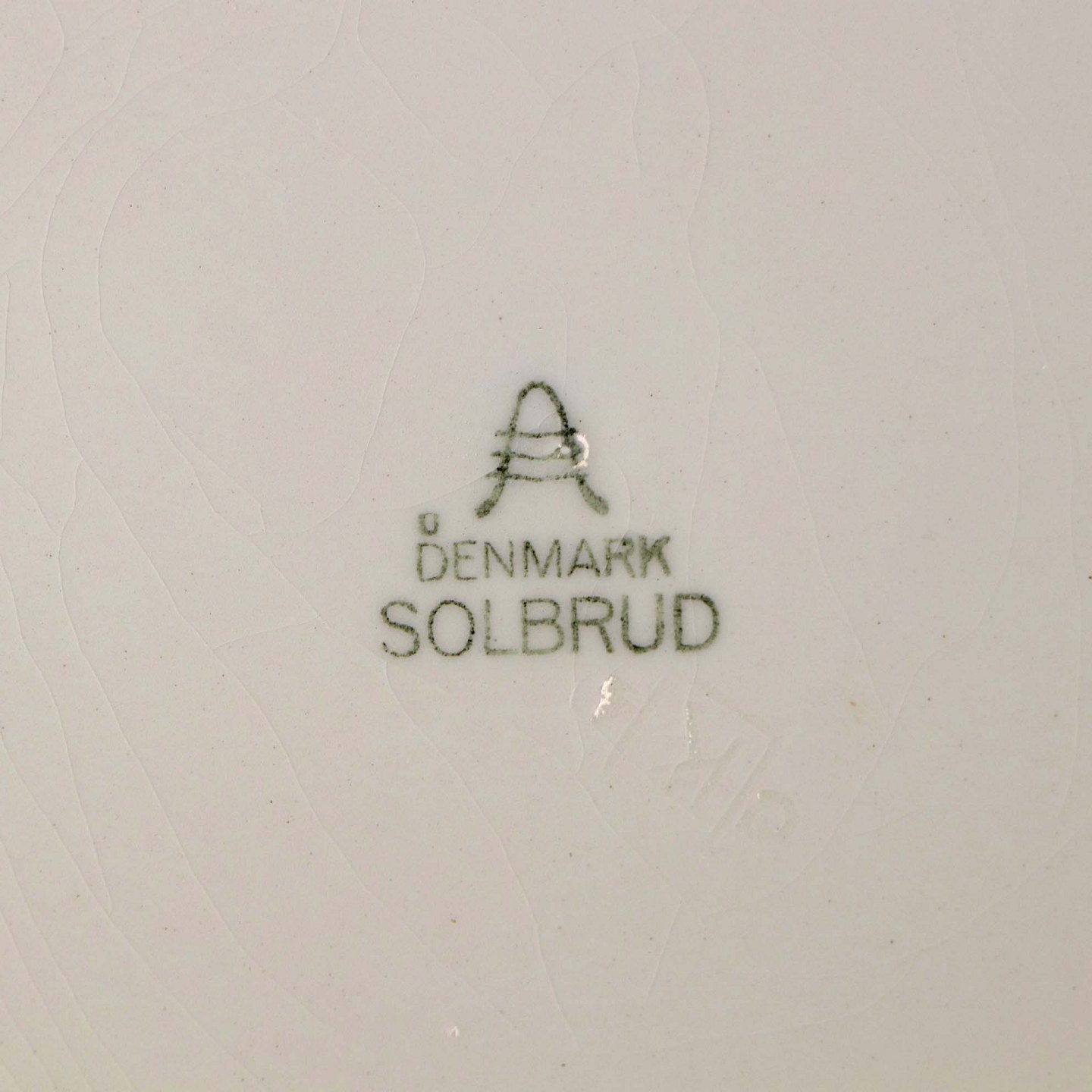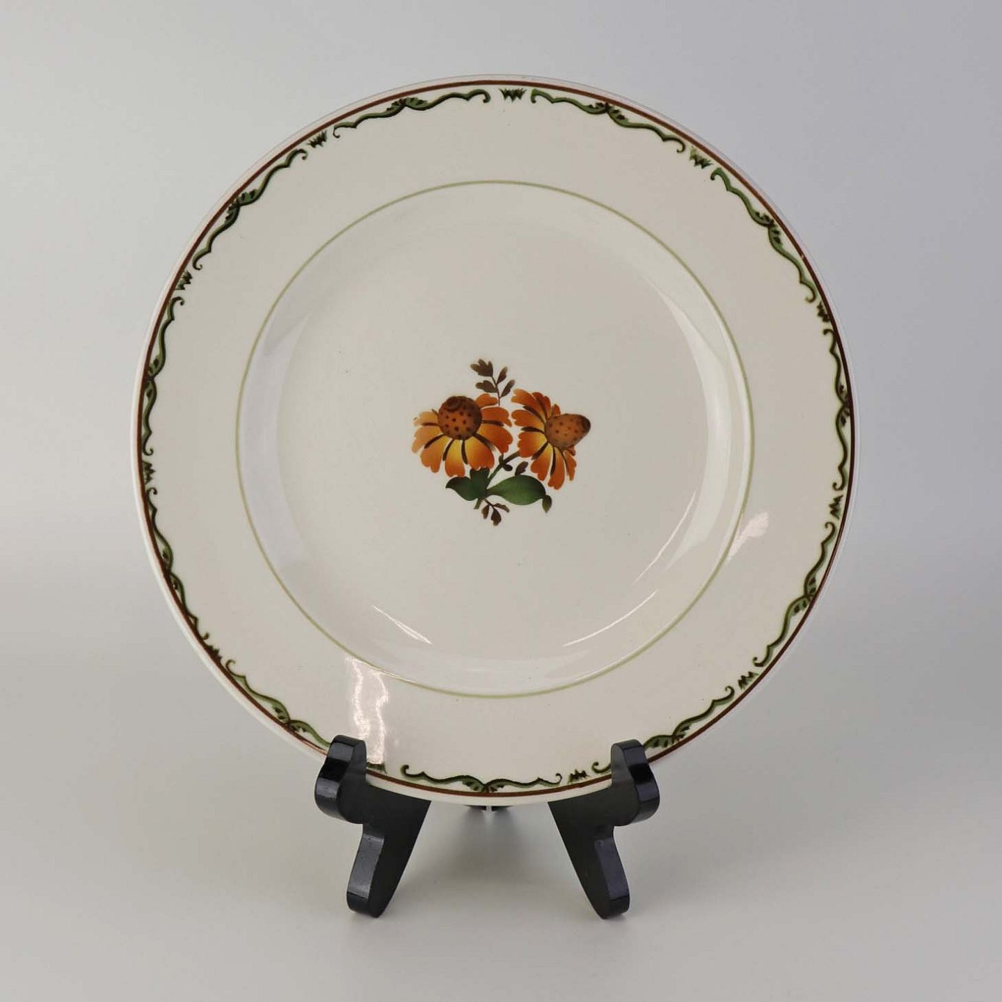 Middagstallerken i fajance fra stellet Solbrud fremstillet i perioden 1937-1967