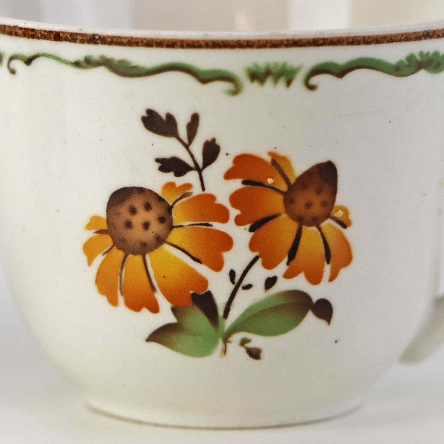 Kaffekop med underkop i fajance fra stellet Solbrud fremstillet i perioden 1937-1967. Nr. 2049