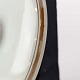 Fremstår med mindre misfarvning i bunden på indersiden samt spor efter brug på ydersiden nederst på skålen samt på dekoration ved topkanten.