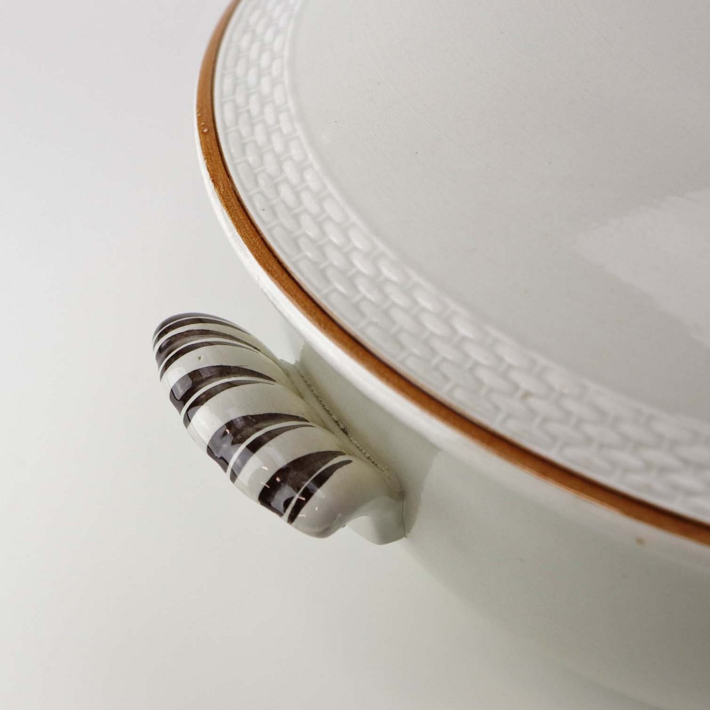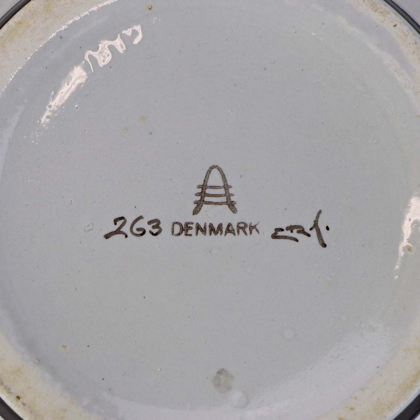 Lågfad i fajance med hanke fra stellet Kirsten, som blev fremstillet i perioden 1934-1957. Nr. 263