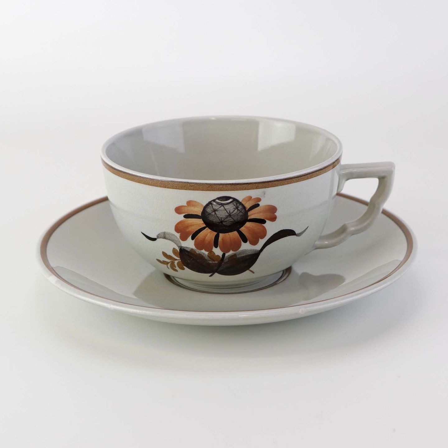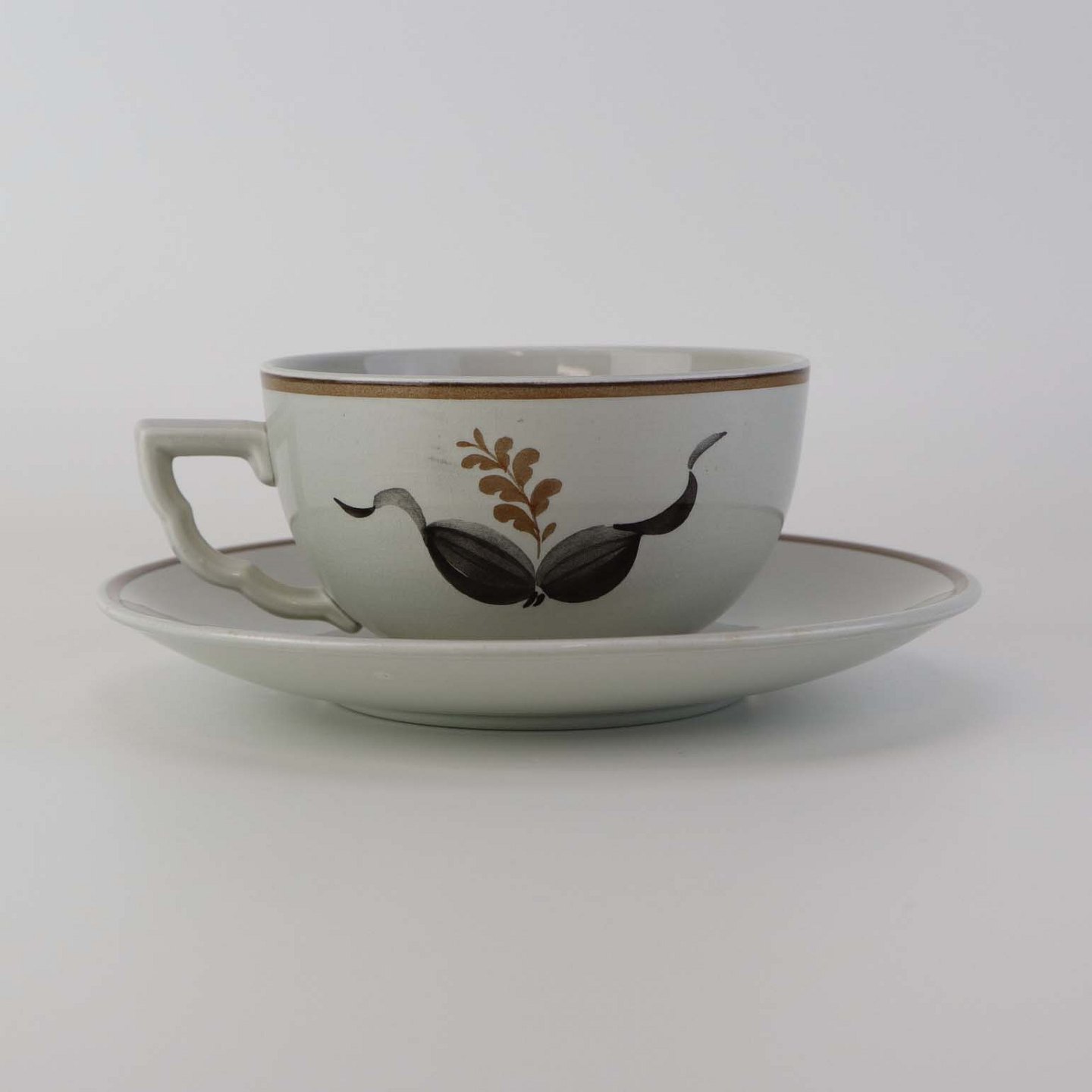 Tekop med underkop i fajance fra stellet Kirsten, som blev fremstillet i perioden 1934-1957. Nr. 263