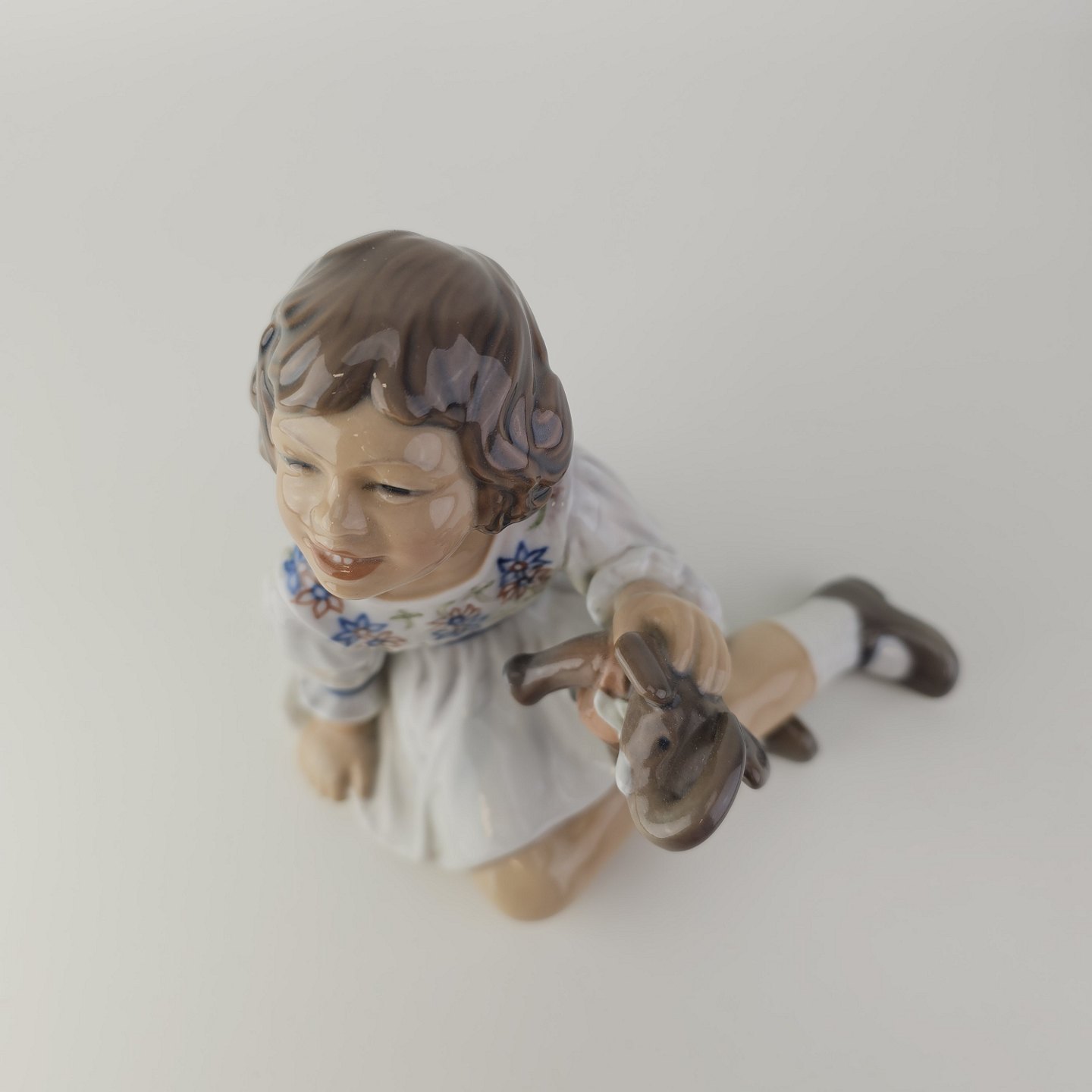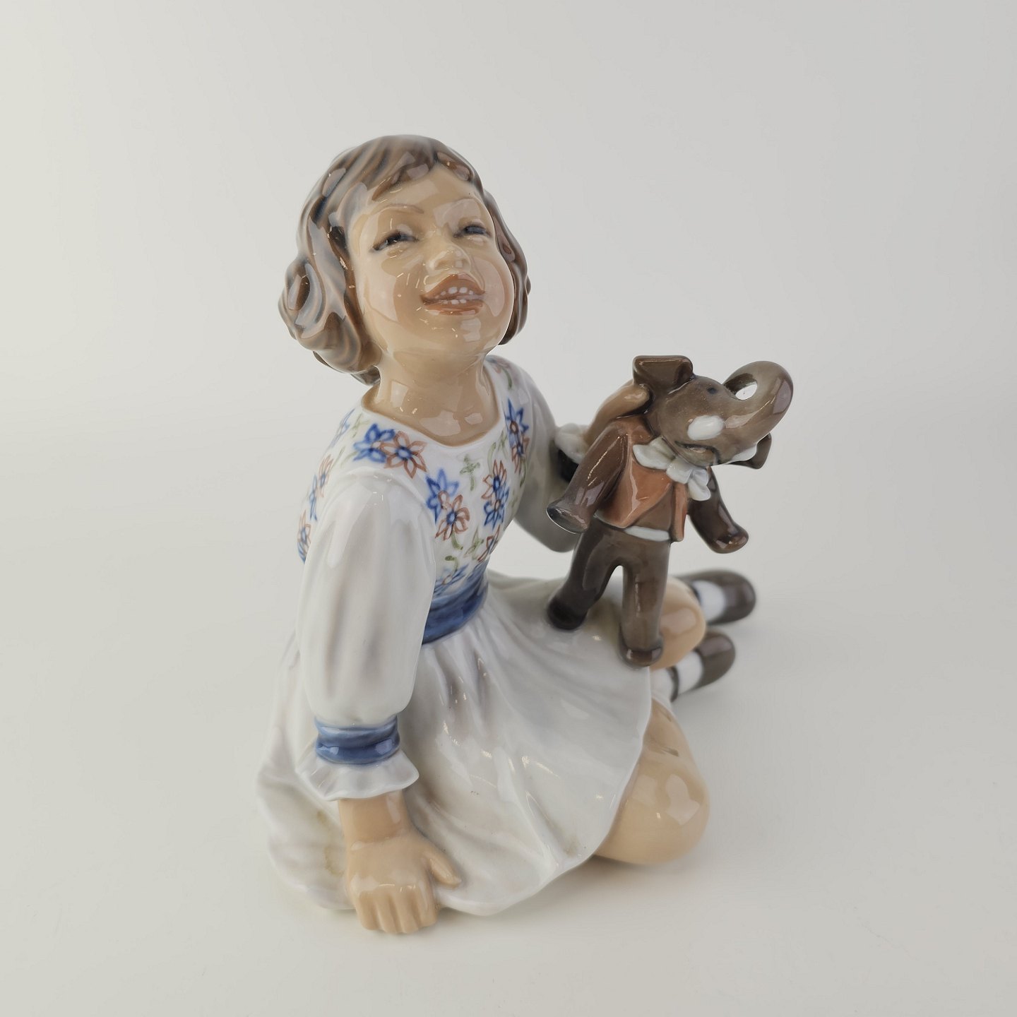 Figur i porcelæn med motiv af en pige med en legetøjselefant