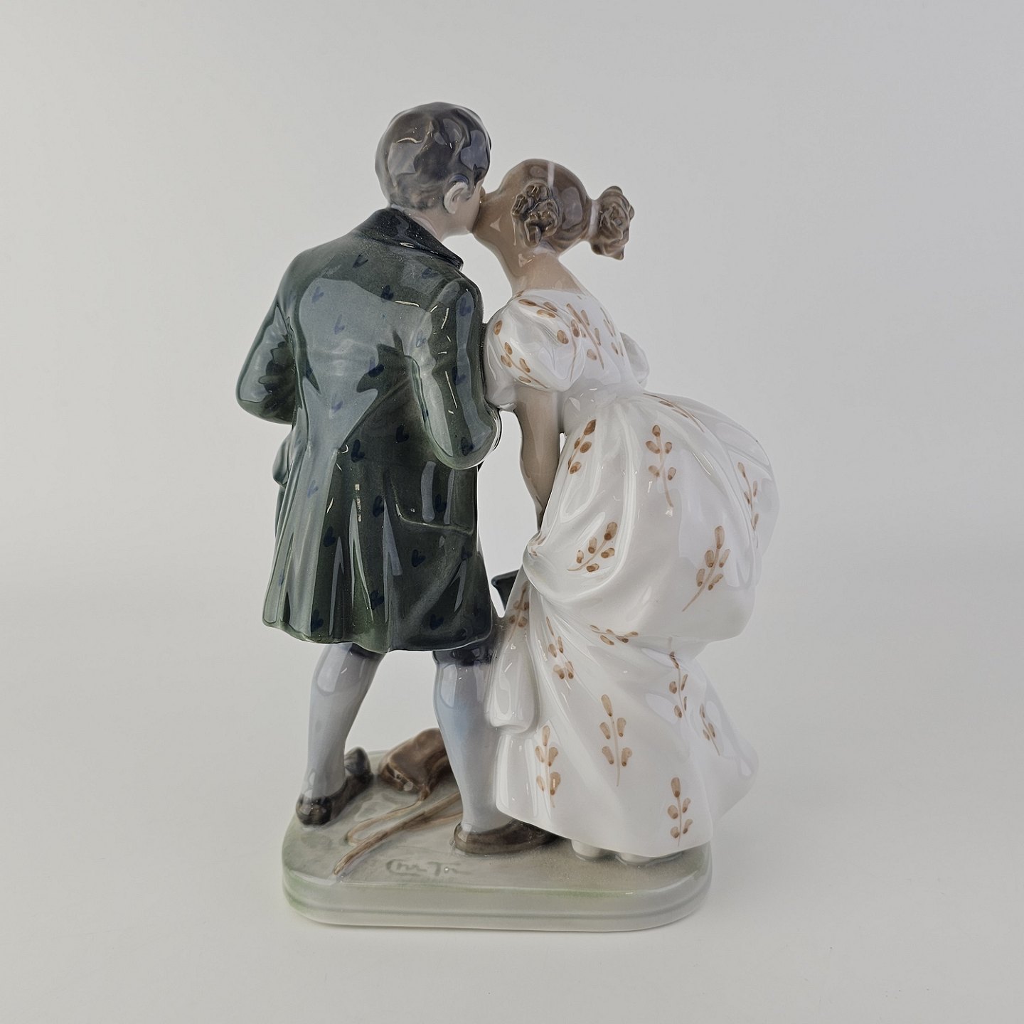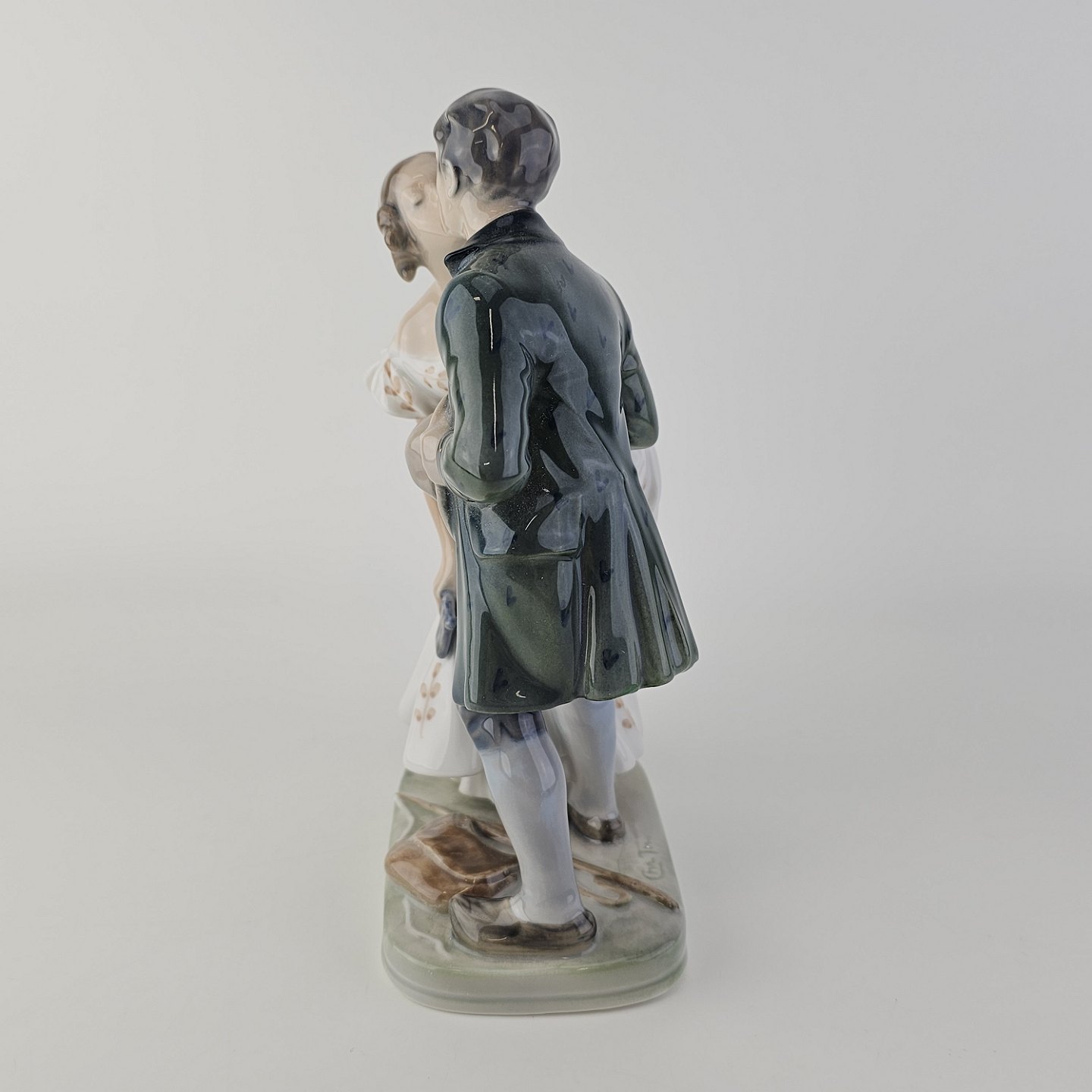 Figur i kongeligt porcelæn med motiv af prinsessen og svinedrengen fra H.C. Andersens eventyr