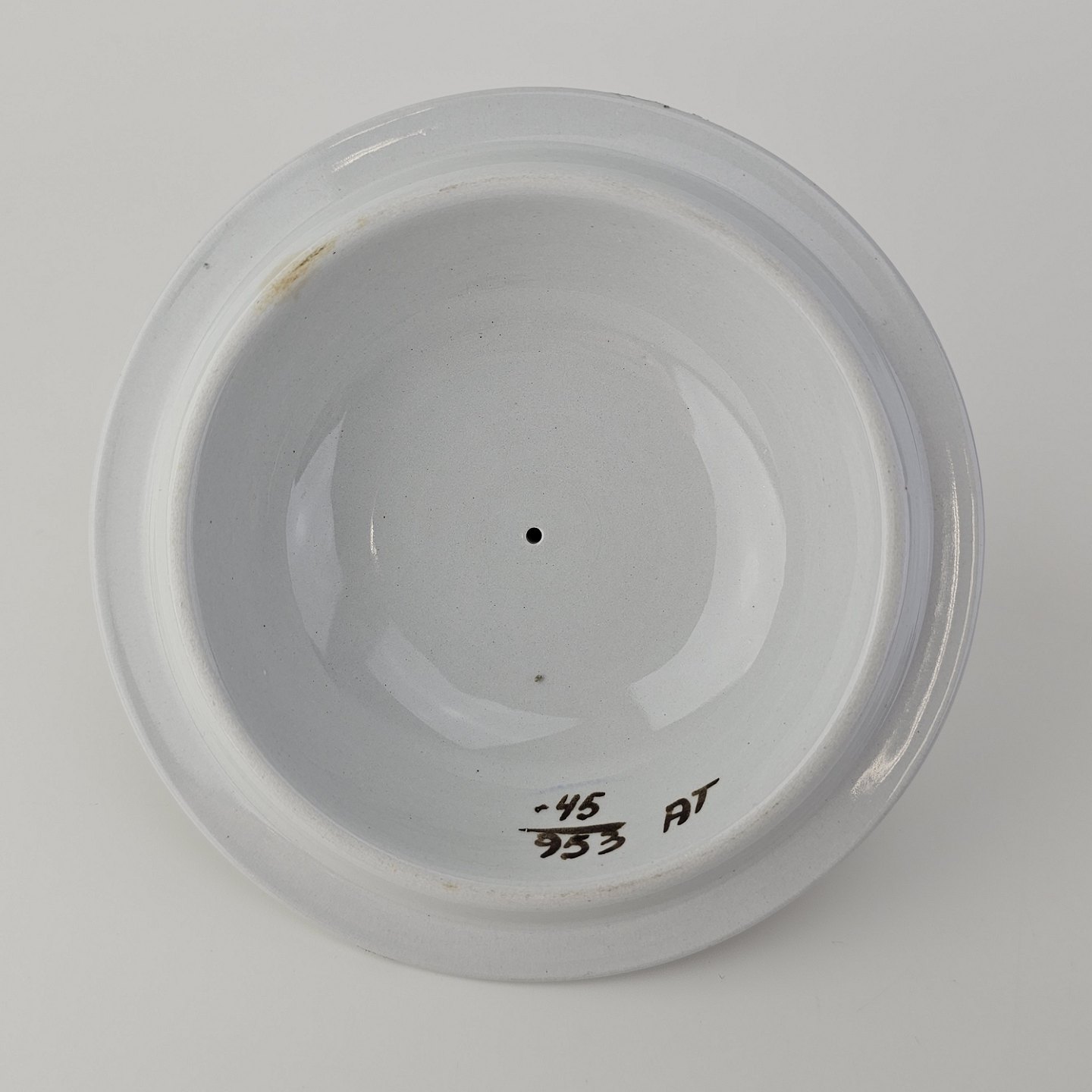 Sukkerskål med låg i fajance fra stellet Brun Tranquebar fra år 1919