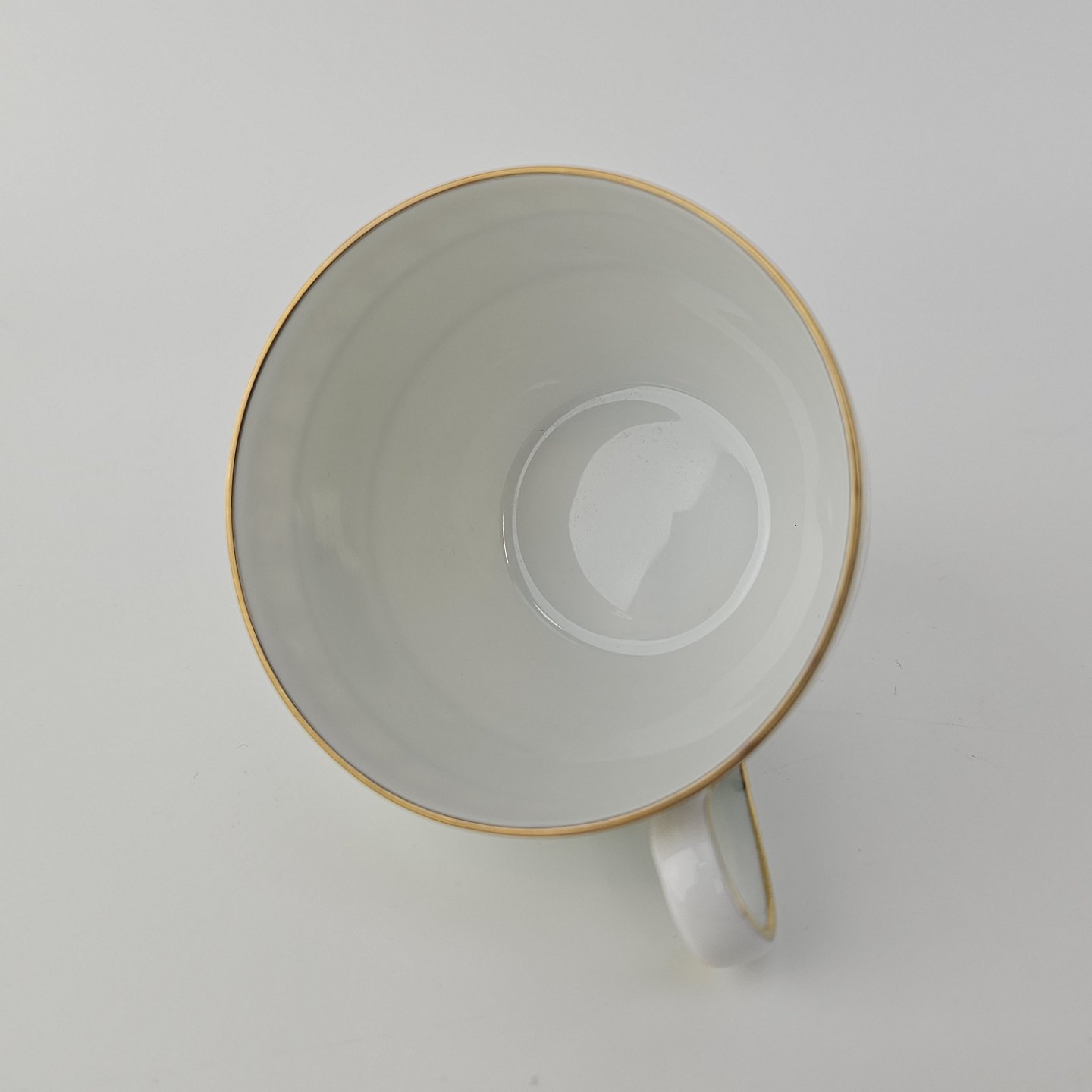 Thorvaldsen er stel i glat hvidt porcelæn med lysegrøn bort, forgyldt dekoration og guldkant